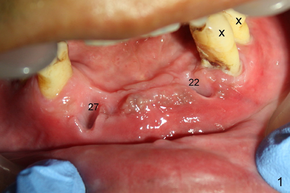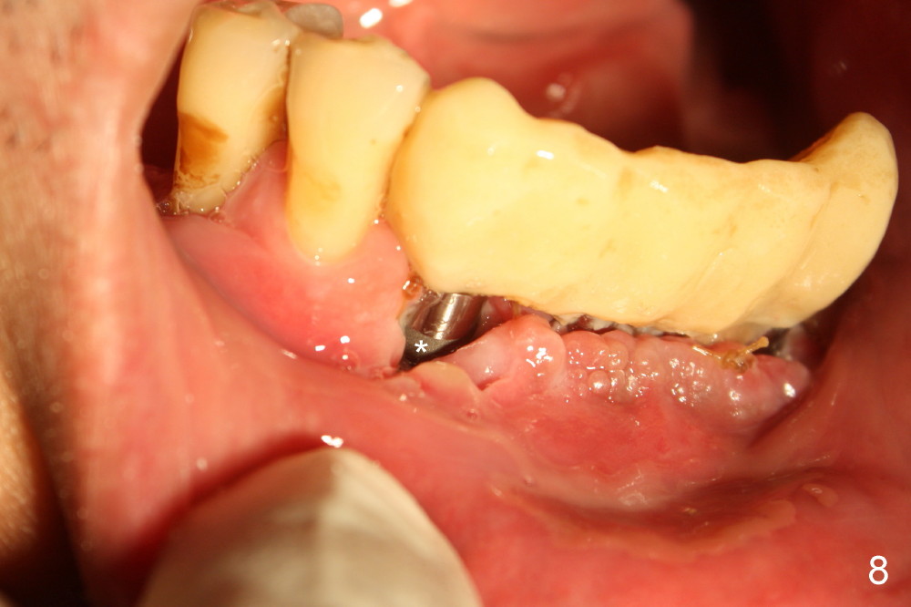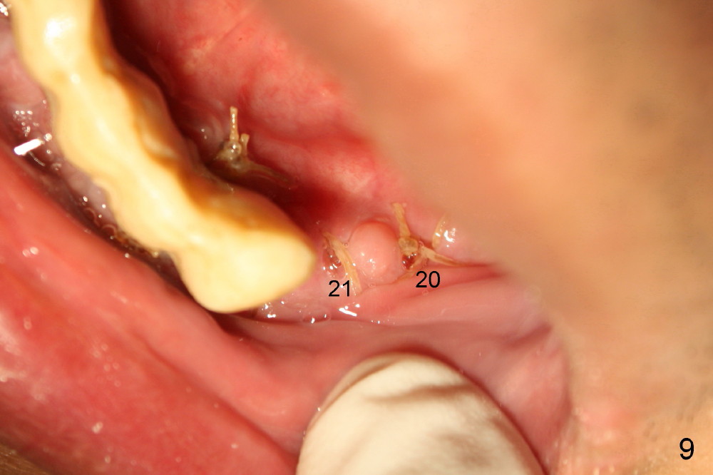 The wound is gapping over the implants (Fig.8), while #20 and 21 sockets are healing one week postop (Fig.9).