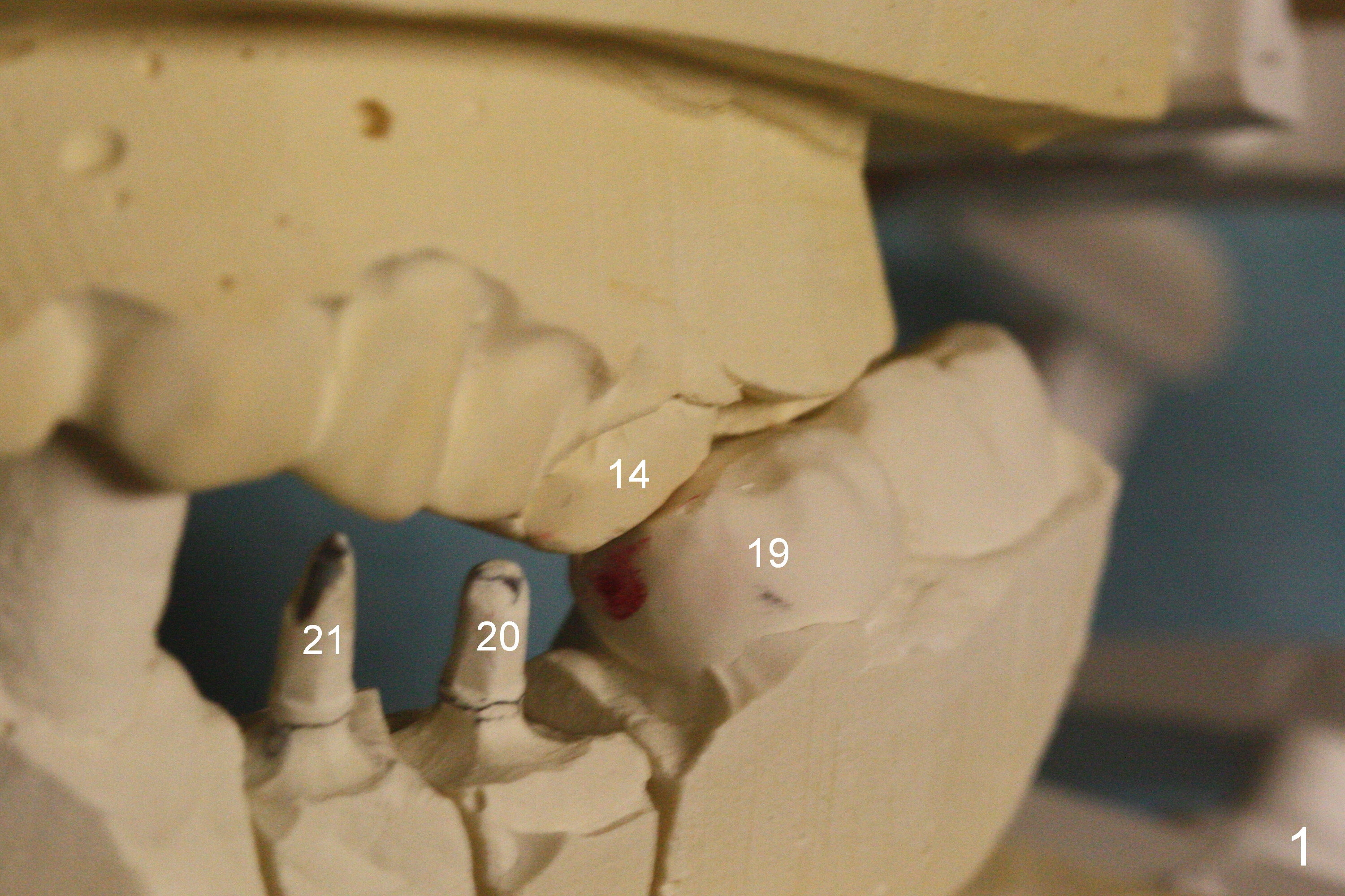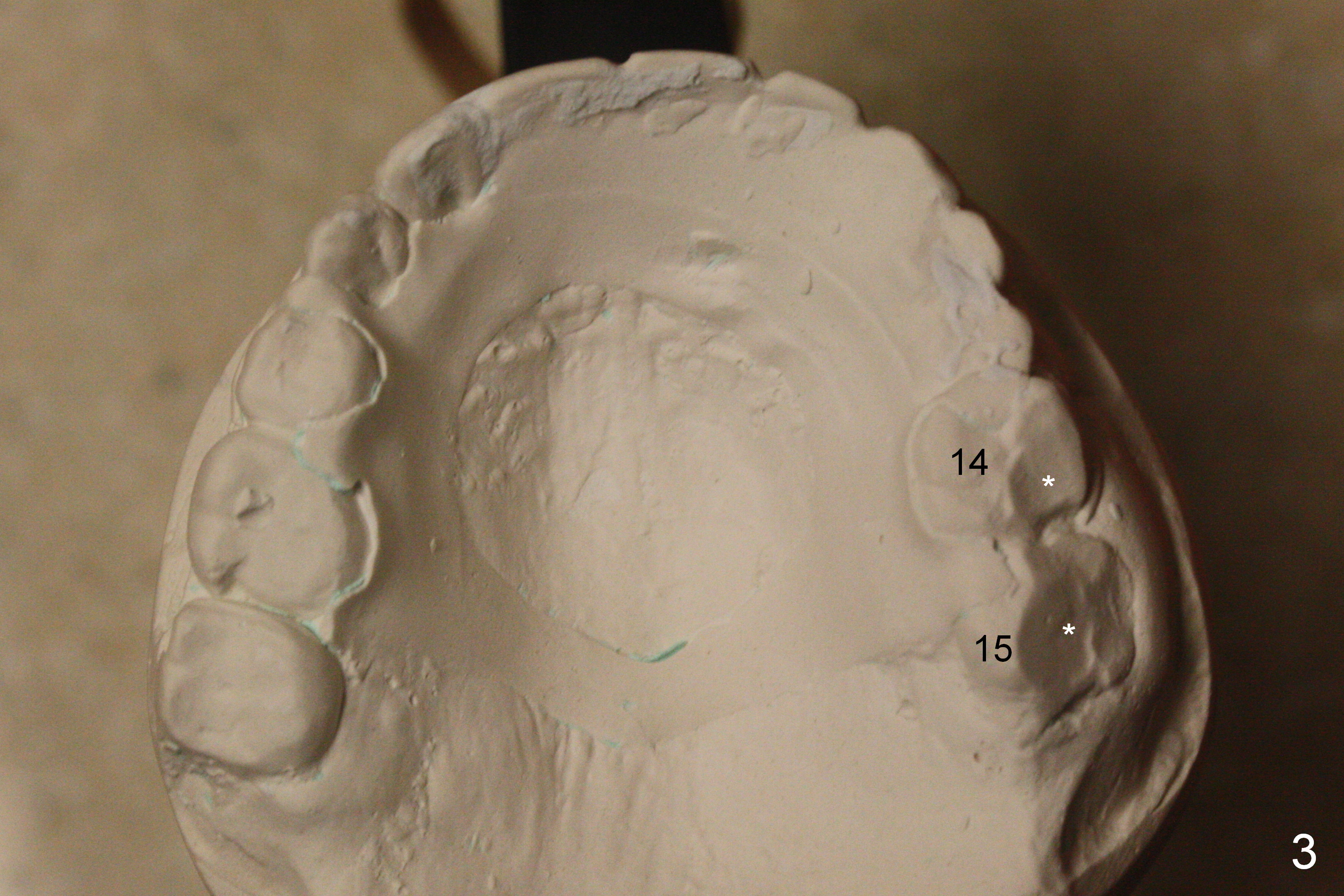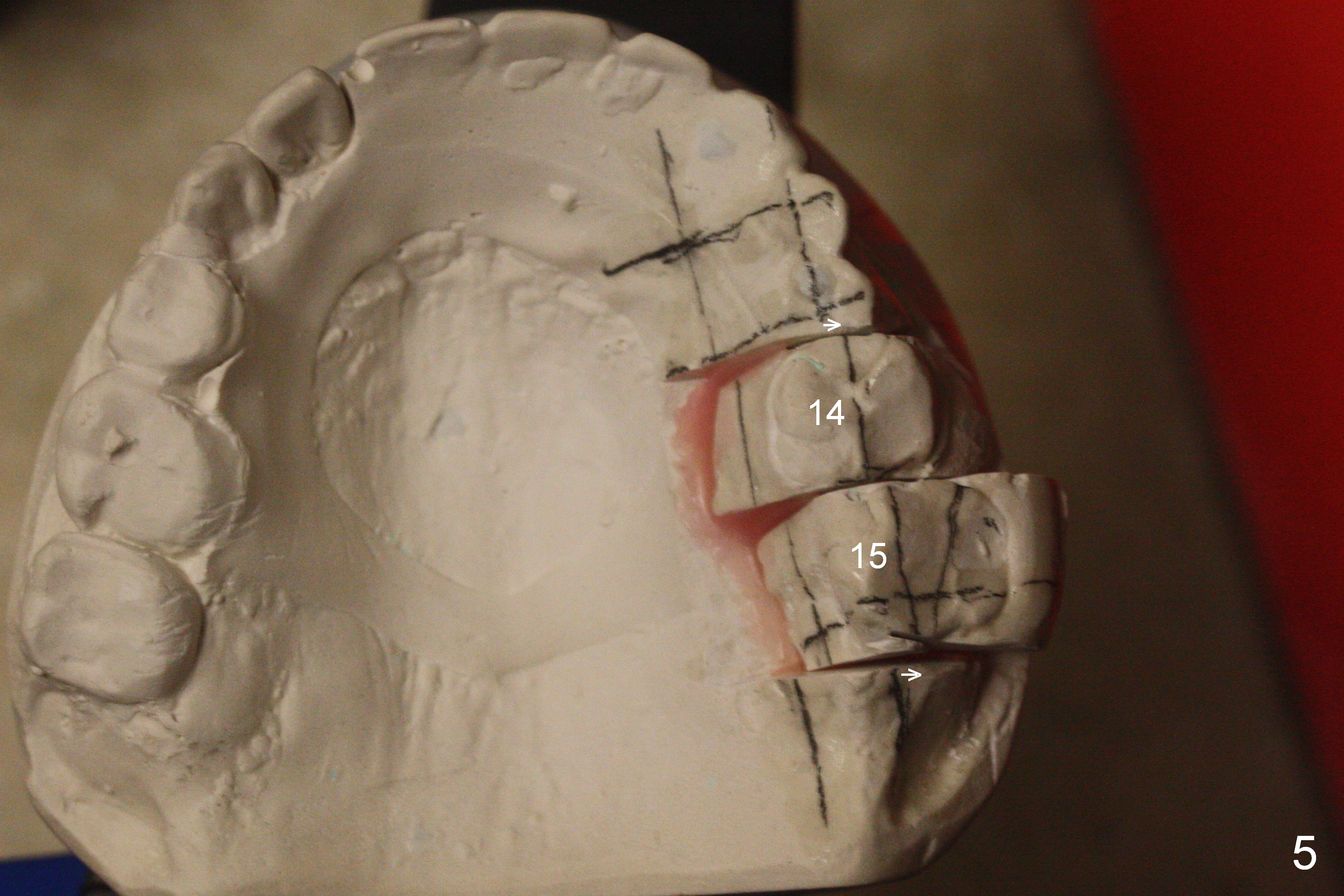For the upper arch, implants are to be placed at #8-13. The provisional crowns are going to be fabricated so that the buccal surface is a little more buccal. With full arch brackets and bands and possible palatal expander, the teeth #14 and 15 are buccally repositioned.