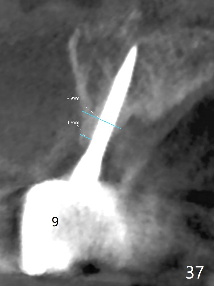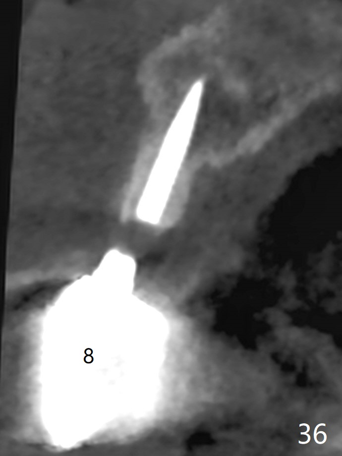 The implant at #8 fractures 1 year 4 months post cementation (2 years 2 months postop, Fig.35-41). All of the implants except #10 are placed in the middle of the alveolus.