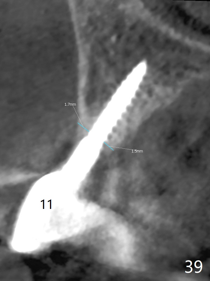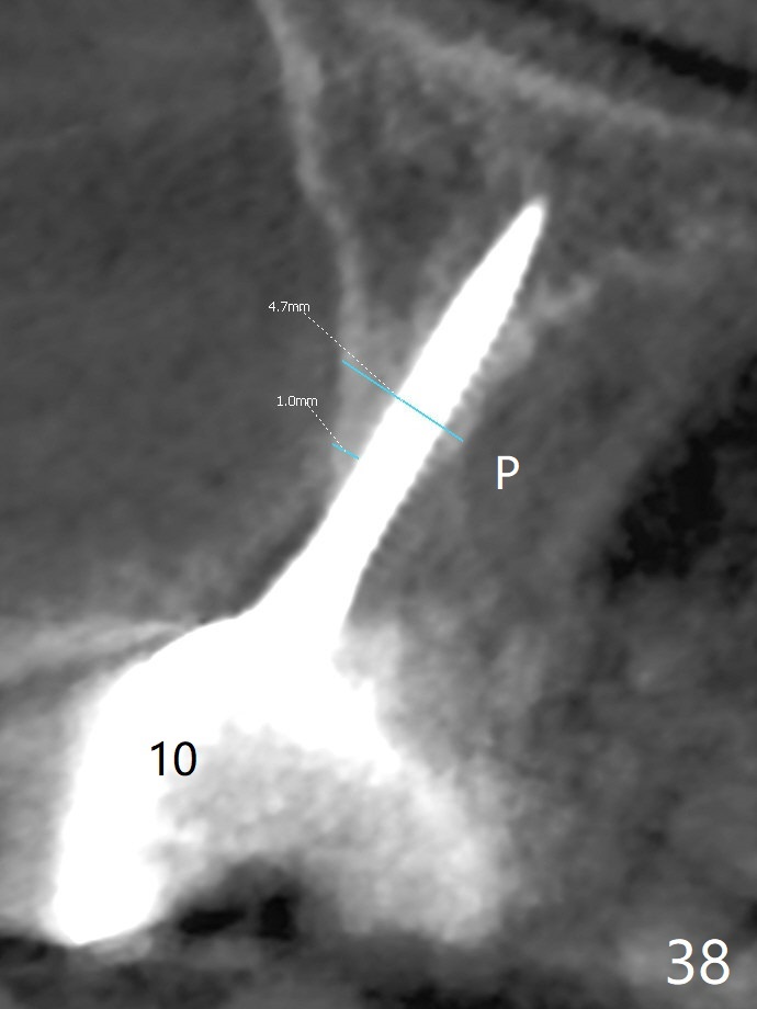 CT is taken 2 years 2 months postop (Fig.35-41). All of the implants except #10 are placed in the middle of the alveolus.