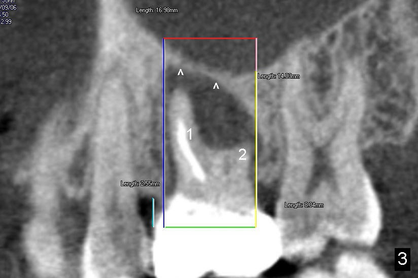 The tooth #3 of a 40-year-old man has endo failure (Fig.1-4) with resorption of the mesiobuccal plate (Fig.2). Ideally a 8x17 mm cylindrical implant is placed immediately post extraction (Fig.2,3). The patient wants to remove the tooth first and wait until his insurance gets approval for the implant coverage. No bone graft is placed in the extraction socket.