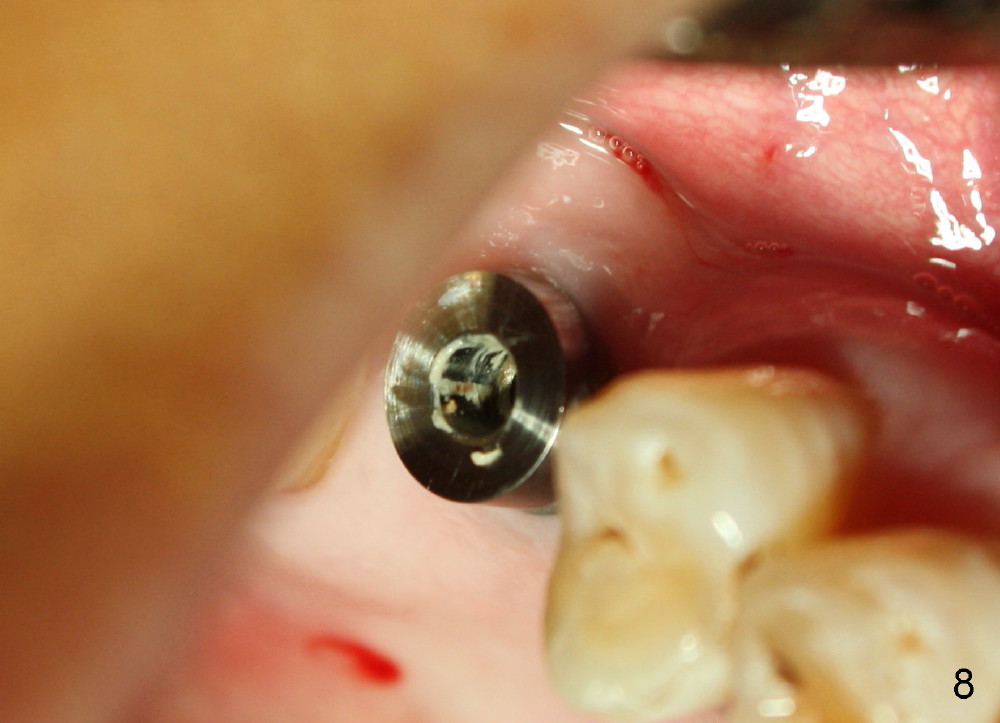 The low insertion torque (40 Ncm) is associated with failure of osteointegration (1st placement), whereas the high one (>60 Ncm) is related to osteointegration (2nd placement of longer implant). What should be done when a 7x17 mm implant fails