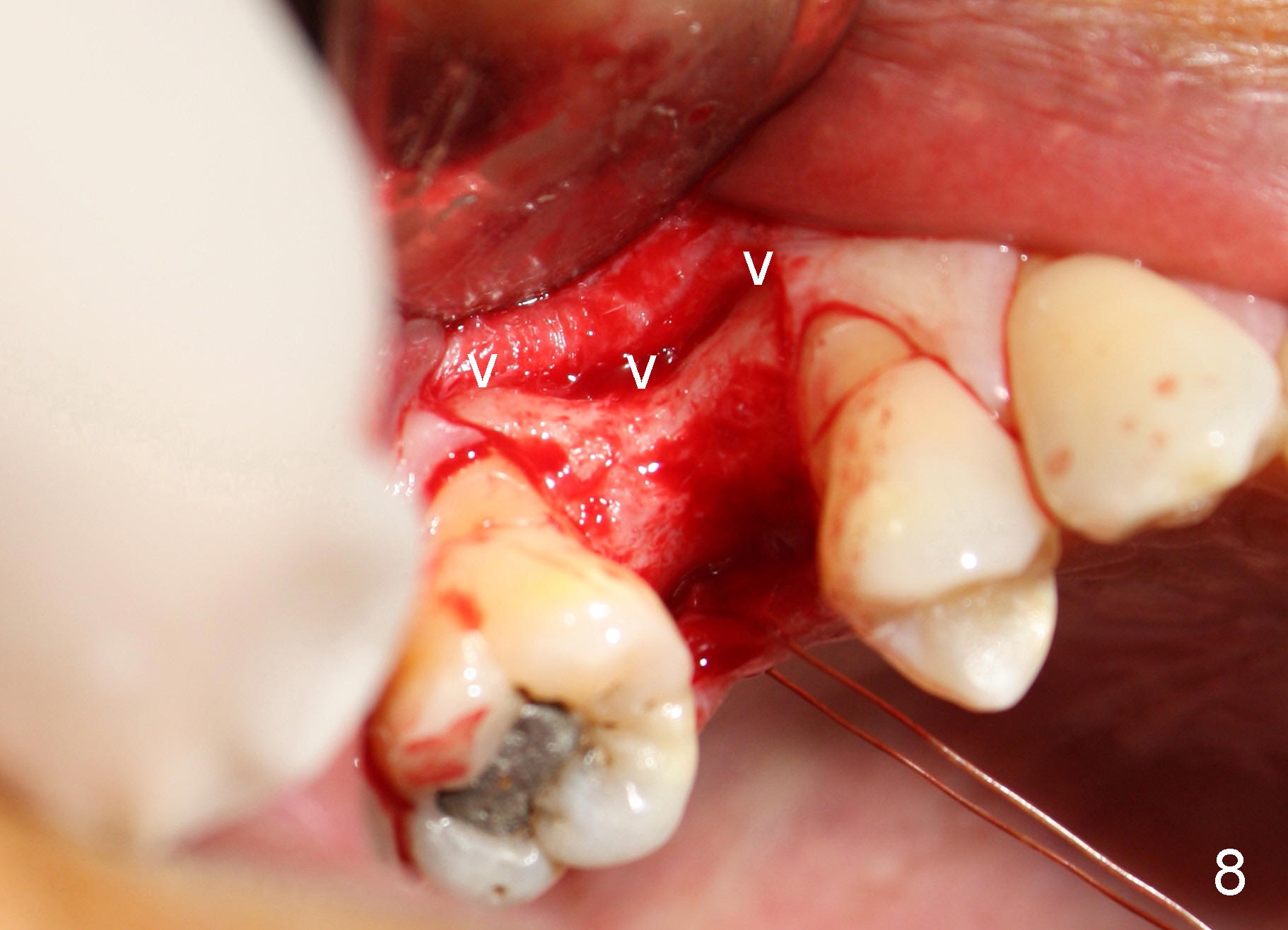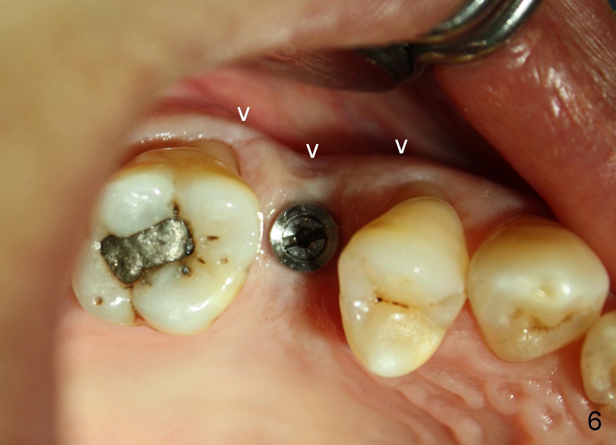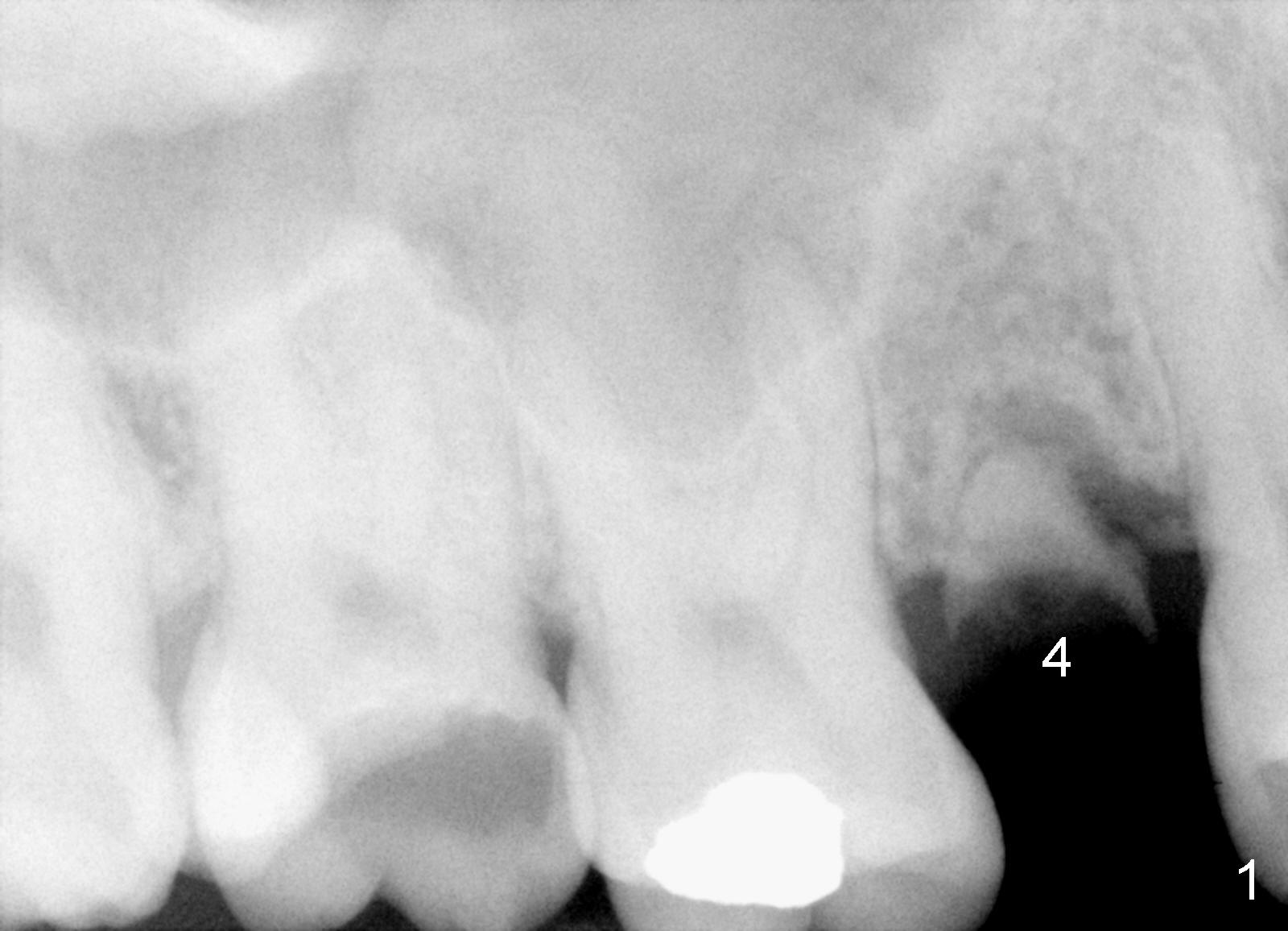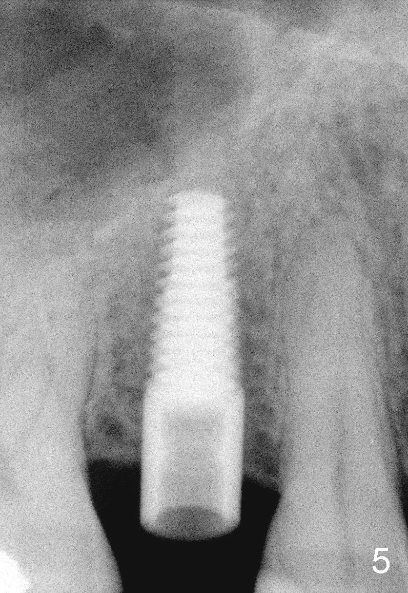 The tooth #4 was removed from a 41-year-old man (Fig.1). Fig.2 was taken 1 year and 7 months post extraction. Osteotomes (Fig.3,4) were used to create osteotomy (7 yr 9 m post ext). A 4x14 mm implant was placed below the sinus floor with insertion torque > 60 Ncm (Fig.5). The surgery was flapless (Fig.6). No antibiotic was taken pre- and post-op. The implant was found to be tender and loose. It was removed without bone graft.