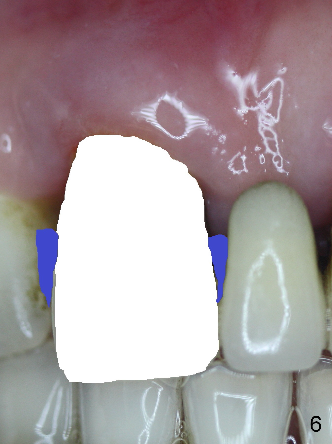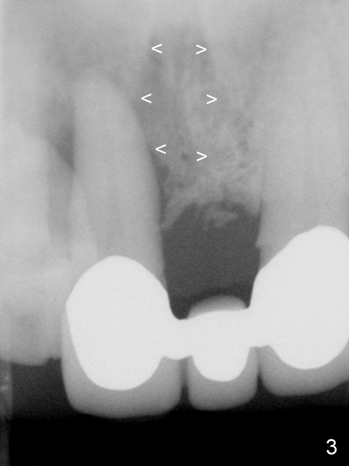 It is our routine to place Clindamycin saturated gauze in the extraction socket for 3 times for a few minutes before osteotomy for immediate implant. It appears that pre-extraction infection does not resolve completely in some cases (1,2). It is reported that localized use of Metronidazole (Anaerobic antibiotic) reduces post sinus graft infection. We are going to test whether this antibiotic can reduce post immediate implant infection, as compared to Clindamycin. Cases are allotted into each category in time sequence. For example, the 1st control case is the one placed last Monday (WS); the 1st test is the present case (YJ). The 3rd case will falls into the 2nd case of control group, whereas the 4th will be the 2nd of the text group. The study will include 20 cases in each group. Infection control is evaluated 1 week postop, 1-2 times before restoration and 6 months post cementation. Evaluation includes vision (whether swelling has been decreased) and palpation (press the fistula to determine whether it has been reduced or disappeared). In fact, an emergency case shifts the distribution of cases as shown below.