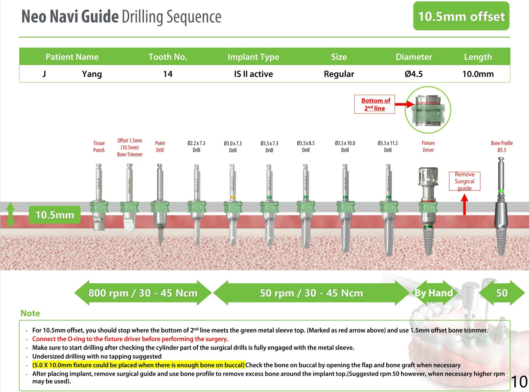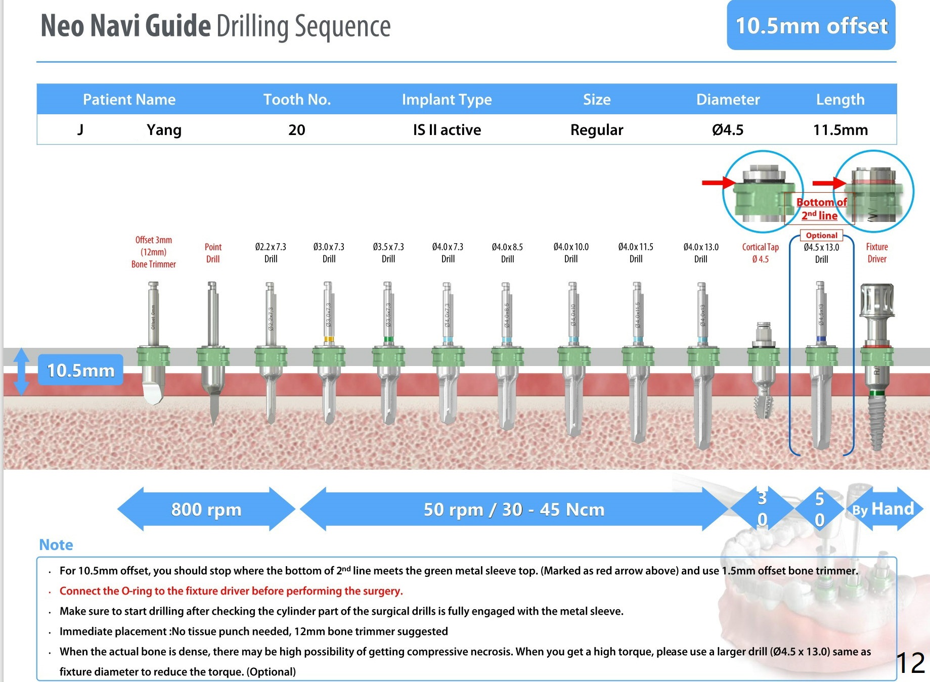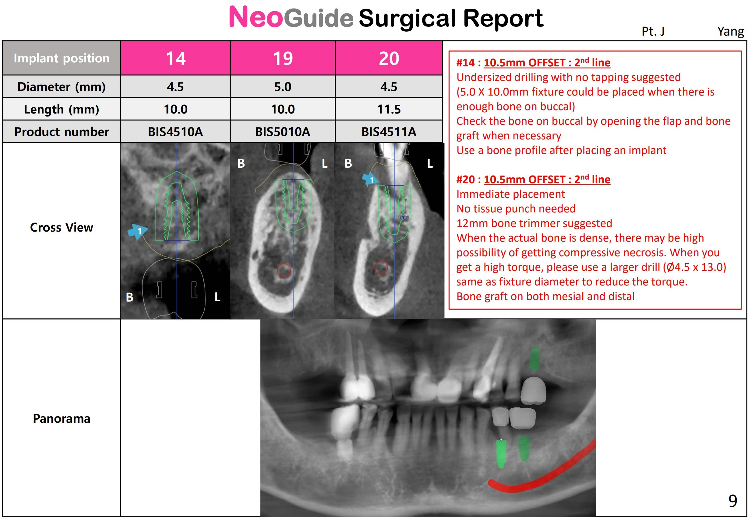 A 80-year-old man requests implants to replace his missing teeth. #14 incision for bone graft. PRFx2. Tatum 14 mm for #14 and 19, 14 or 17 mm for 20. Prepare taps.