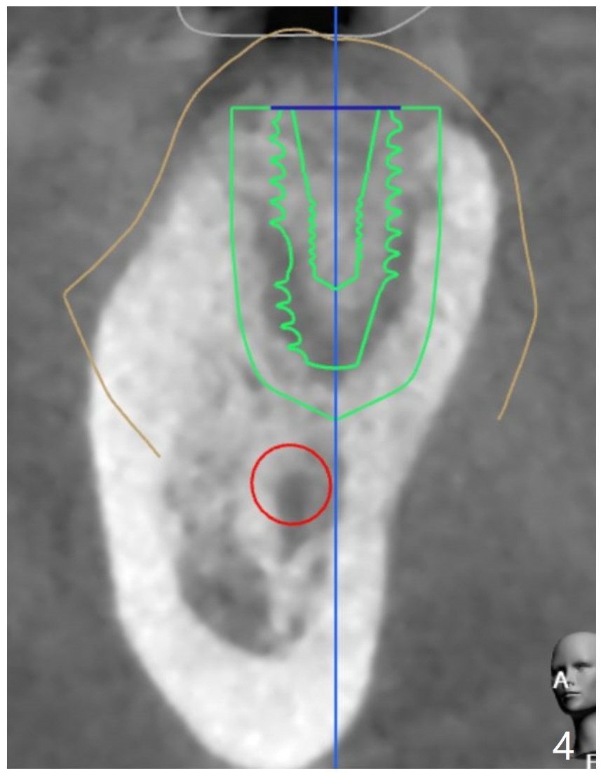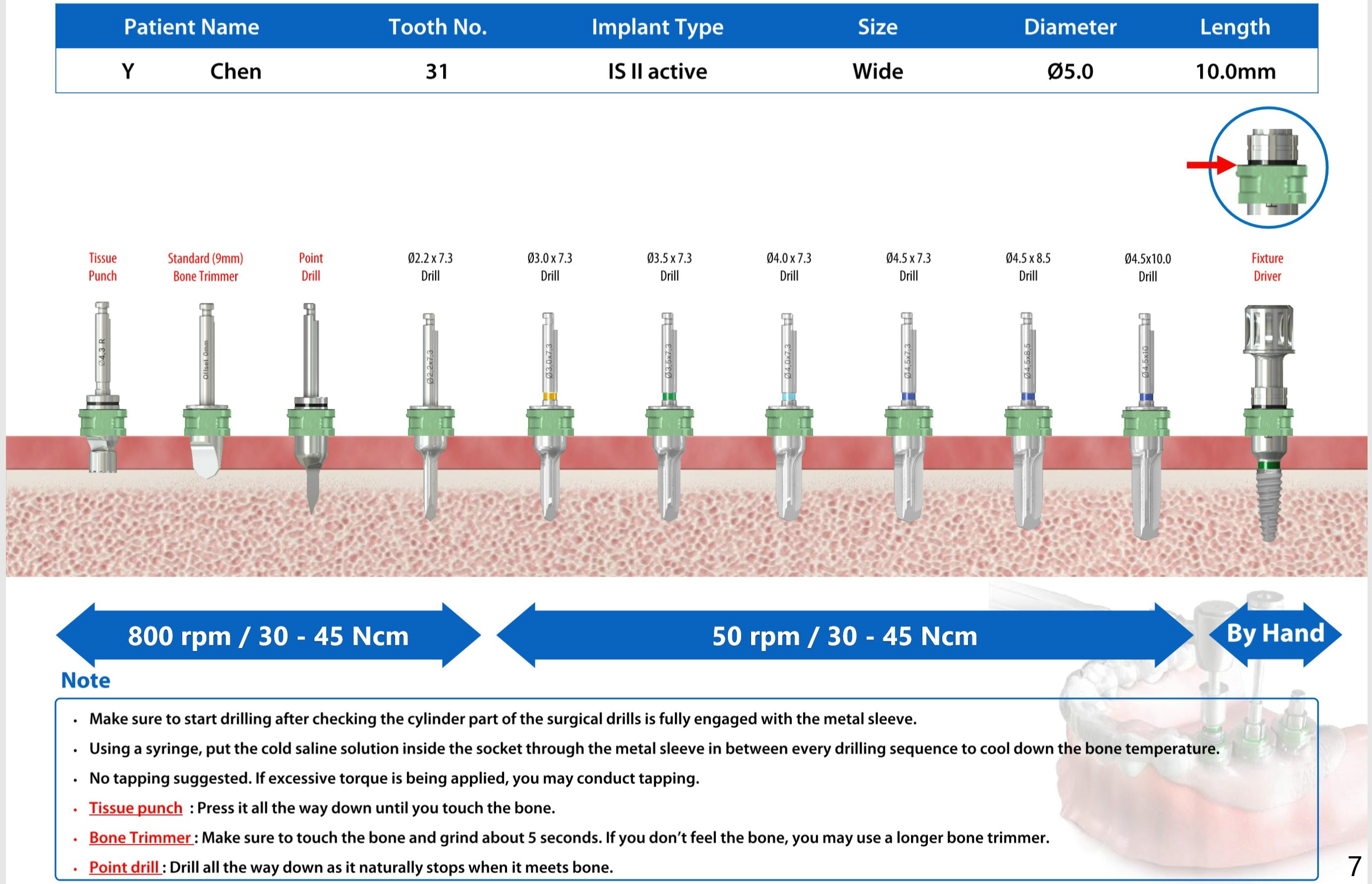 Seven months post socket preservation. Due to coronavirus, the surgery is postponed for 3 months. When the patient returns, take a PA for density check using sensor I. Also take a PA for #3 implant. Take 5x5 pre- (crestal cortex formation? (10 months post socket preservation)) and post-op.