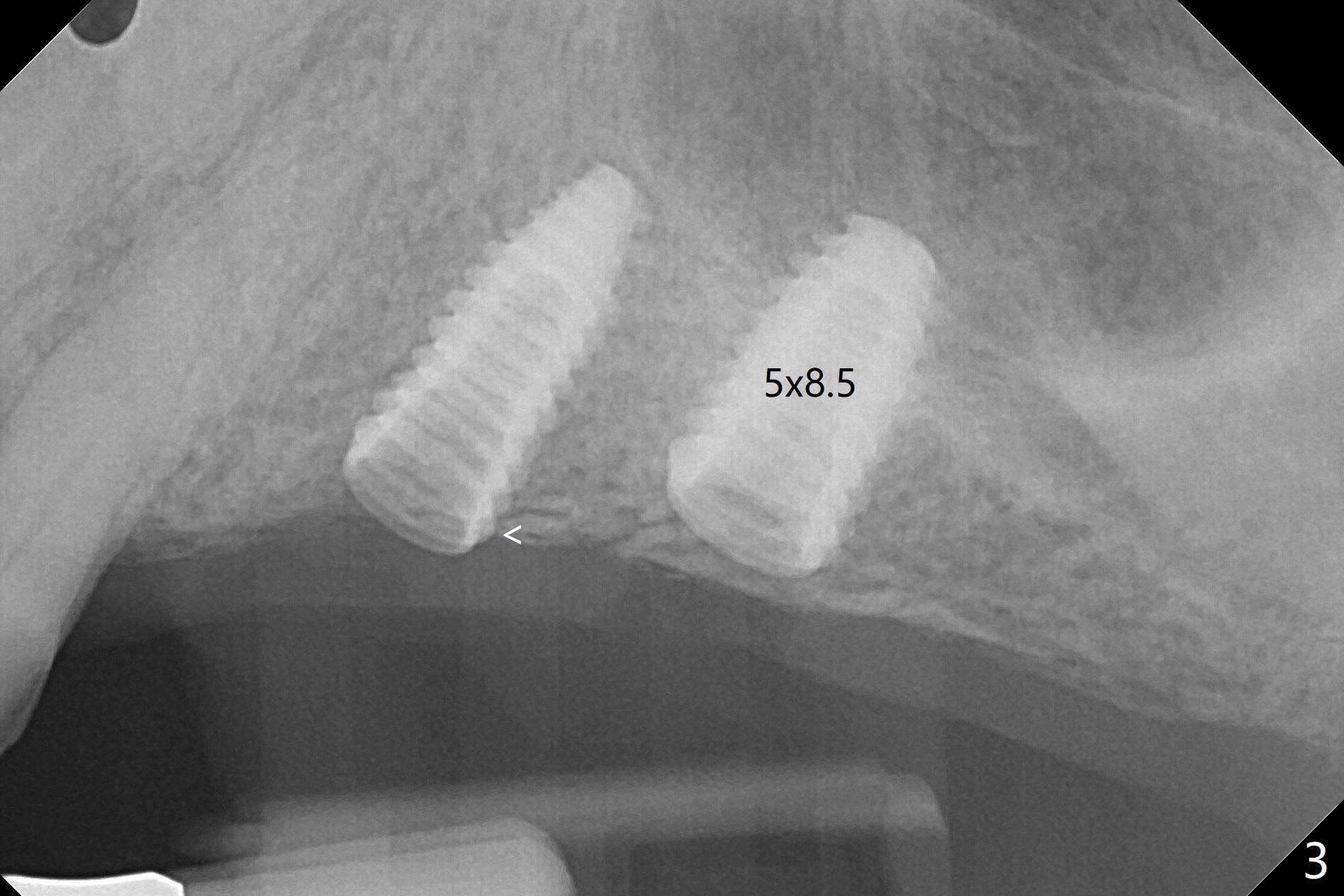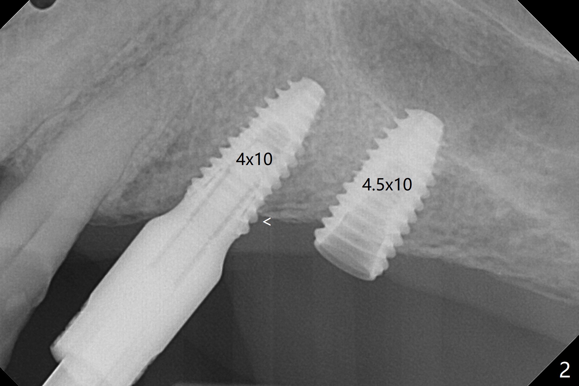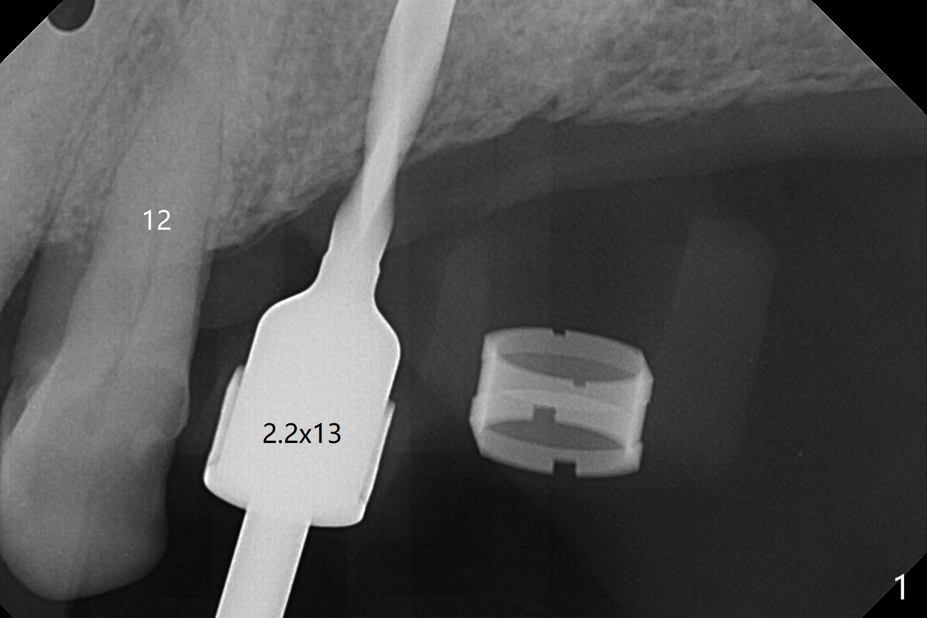 PA is taken after 2.2 mm drill reaches the depth at #13 to confirm that the osteotomy is parallel to the long axis of the tooth #12 (Fig.1). Fixture mount is used to place a 4x10 mm implant at #13 and stays as an anchor pin while osteotomy and sinus lift are being conducted at #14 (Fig.2). In fact there is discrepancy in depth using the guide. For example the last drill for osteotomy is 4.5x7.3 mm according to design, whereas 4.5x11.5 mm drill has to be used before the sinus floor has small area of perforation without sinus membrane breakage. Autogenous bone harvested from the osteotomy, PRF membrane and a 4.5x10 mm dummy implant are used for sinus lift (Fig.2). The placement depth of the implant at #13 has to be adjusted multiple times until satisfaction (Fig.2-5). The implant at #14 is infected and loosened 1.5 months postop; after its removal, the sinus floor is absent without membrane perforation; the large defect with basically intact buccal and palatal walls is grafted (Fig.6 *). Four to five months later, use the same guide and drill sequence until 3.5x7.3 mm drill. Insert a 4x10 mm dummy implant to the 2nd line of 12 mm offset and take 5x5 cm CT to determine the diameter and depth of a final implant. Use healing screw. The pattern of bone graft changes 3 months postop (Fig.7, as compared to Fig.6). Return to Upper Arch Immediate Implant, Trajectory II 矫正,糖尿病,种植水平 Xin Wei, DDS, PhD, MS 1st edition 08/06/2019, last revision 12/06/2020