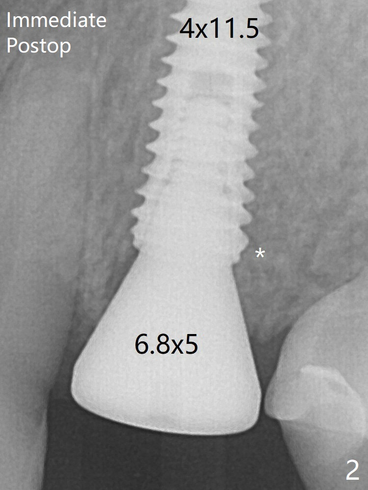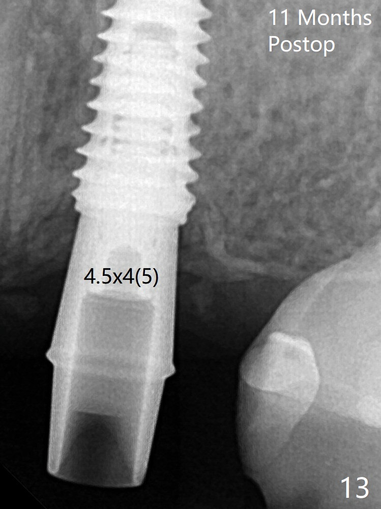 There is crestal remodeling without implant thread exposure 11 months postop (Fig.13).
