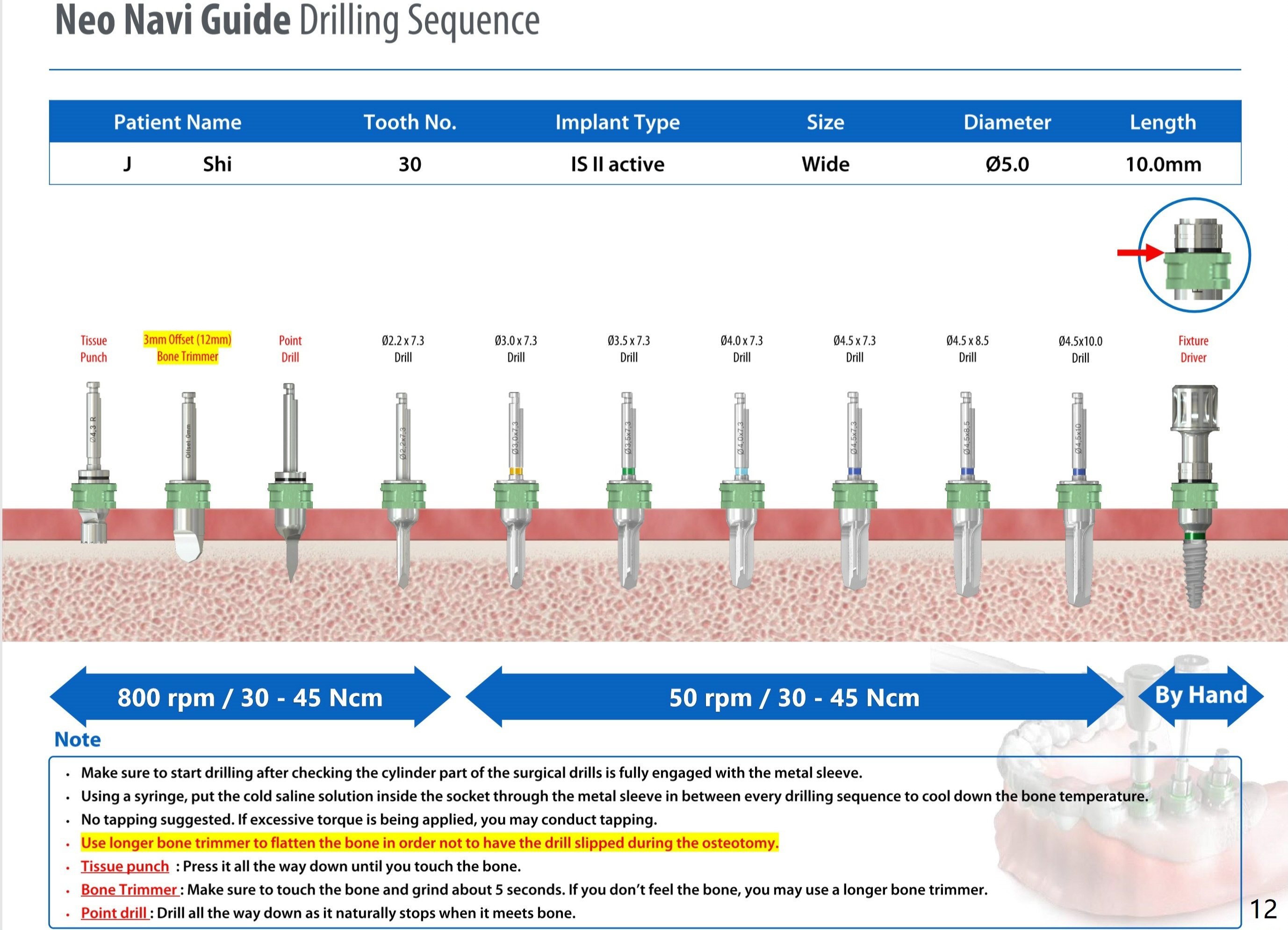 Also incision. Place bone graft before implant if needed. In fact 5 mm tap and cortical drill have to be used before placement of the implant ~ 50 Ncm.