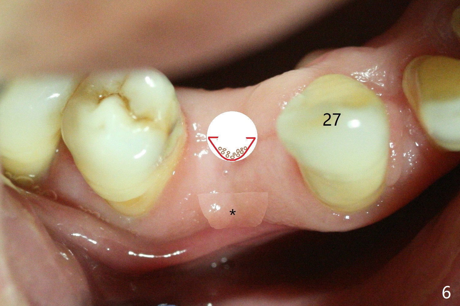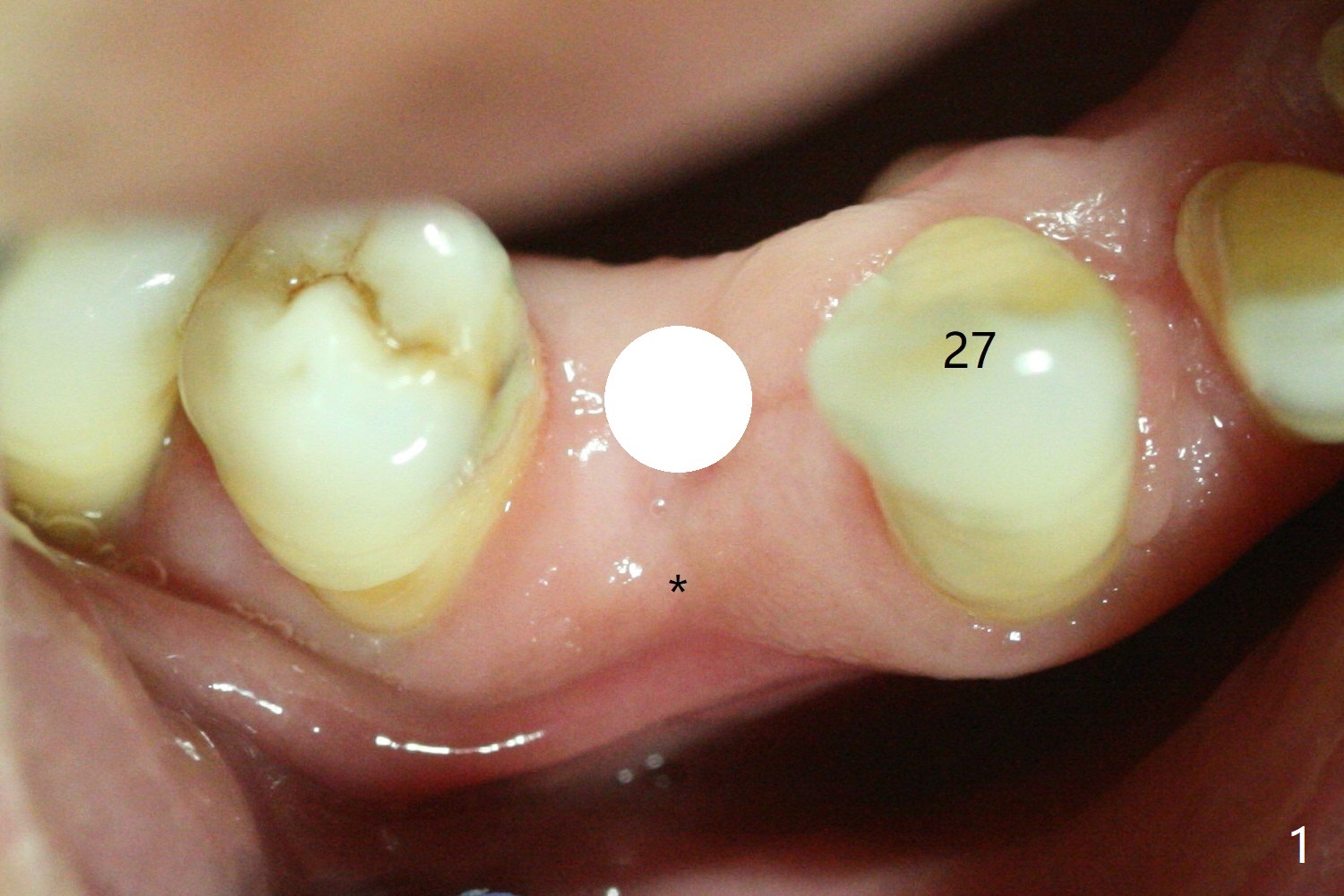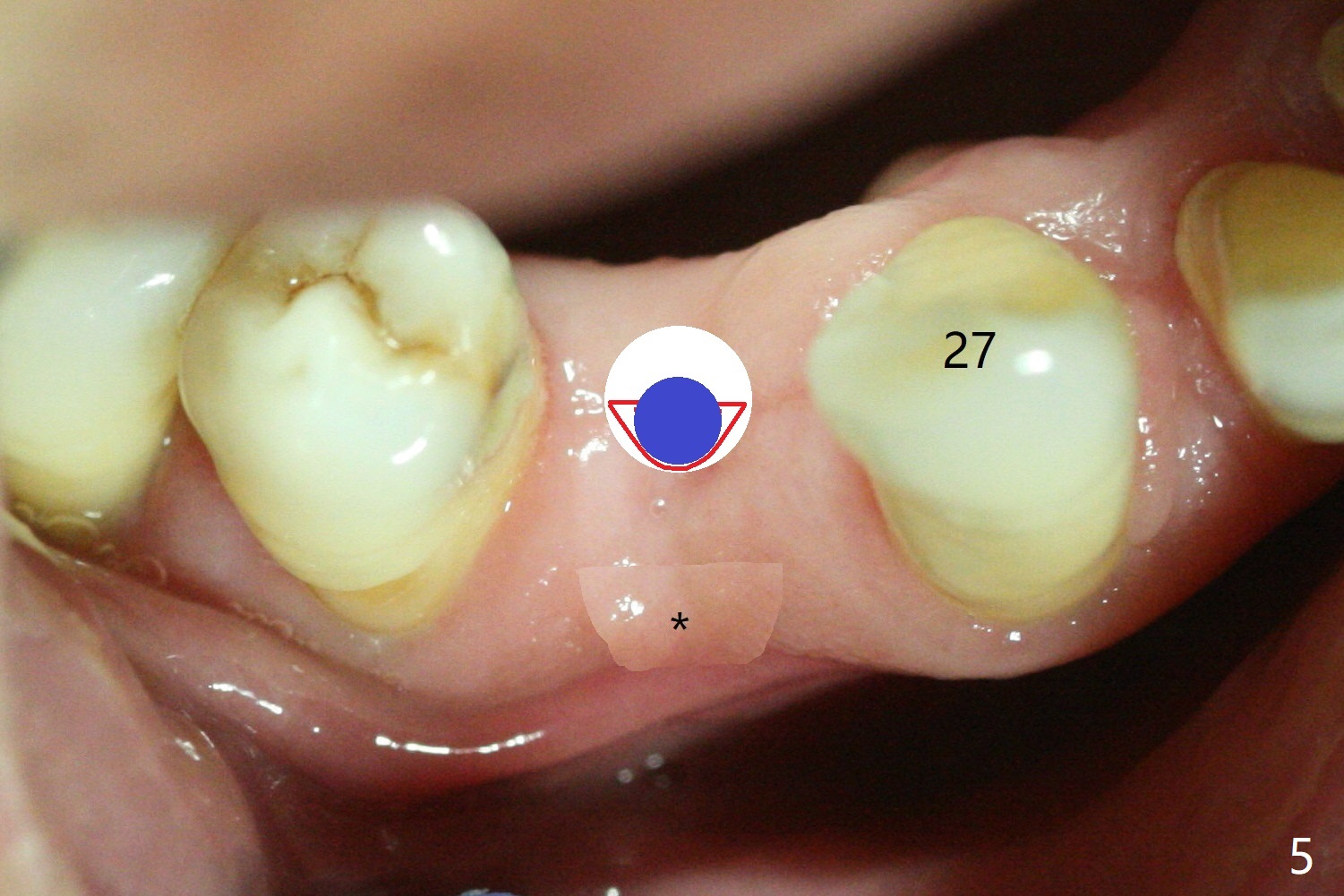 (Fig.1 white circle) through surgical guide at #28 with the concave buccal plate
