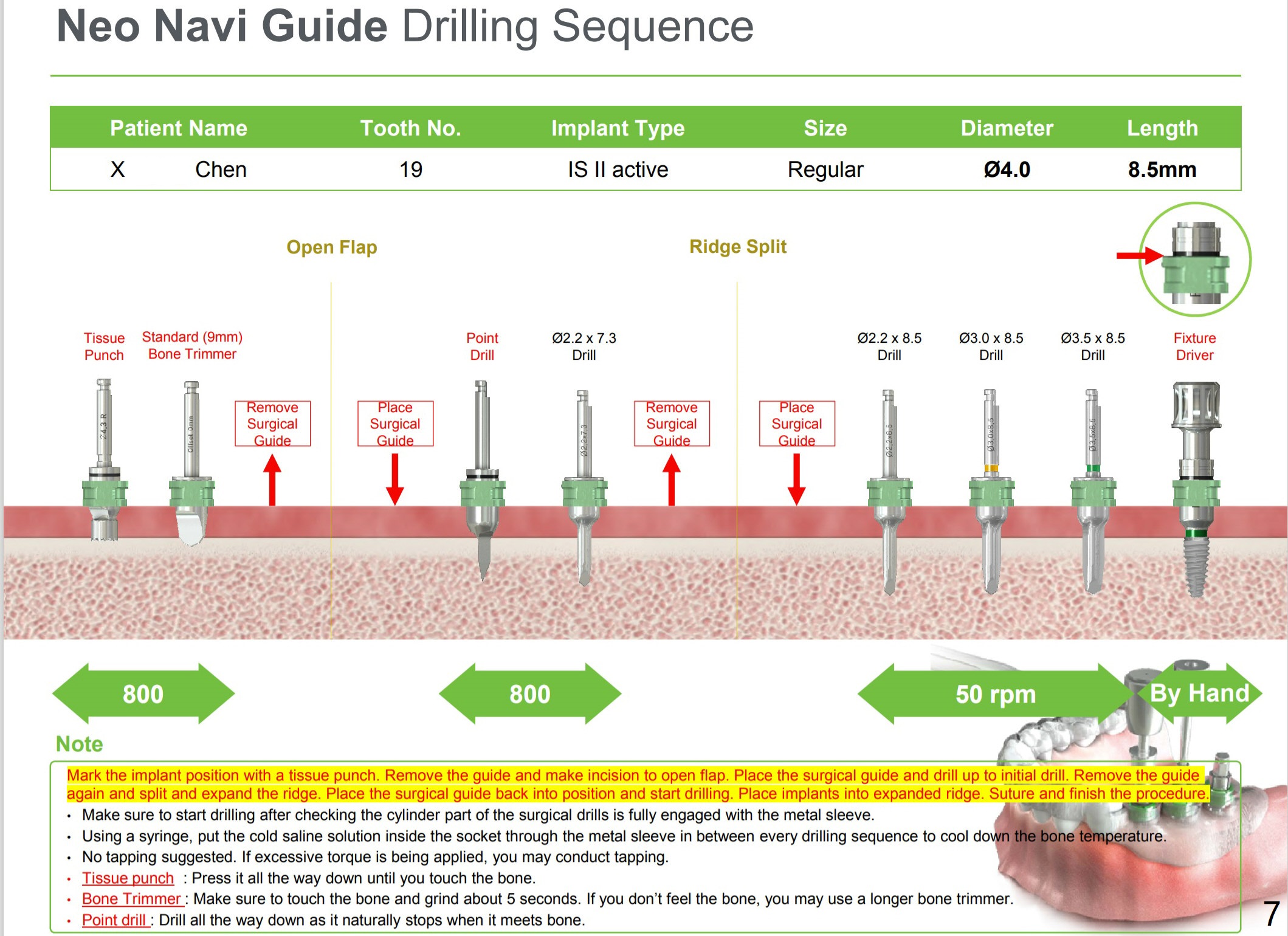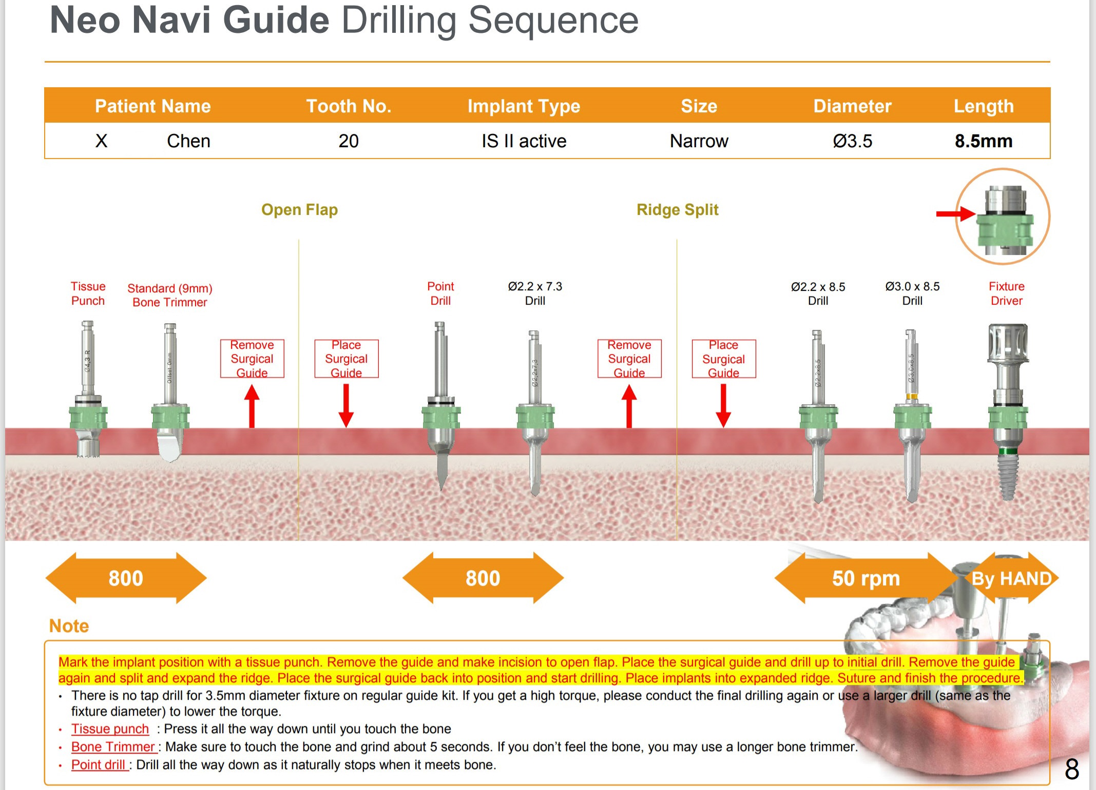 For split, prepare, wheel bone saw, blade osteotomes, surgical handpiece (new skinny bur), IBS Surgical Kit (Magic Split)