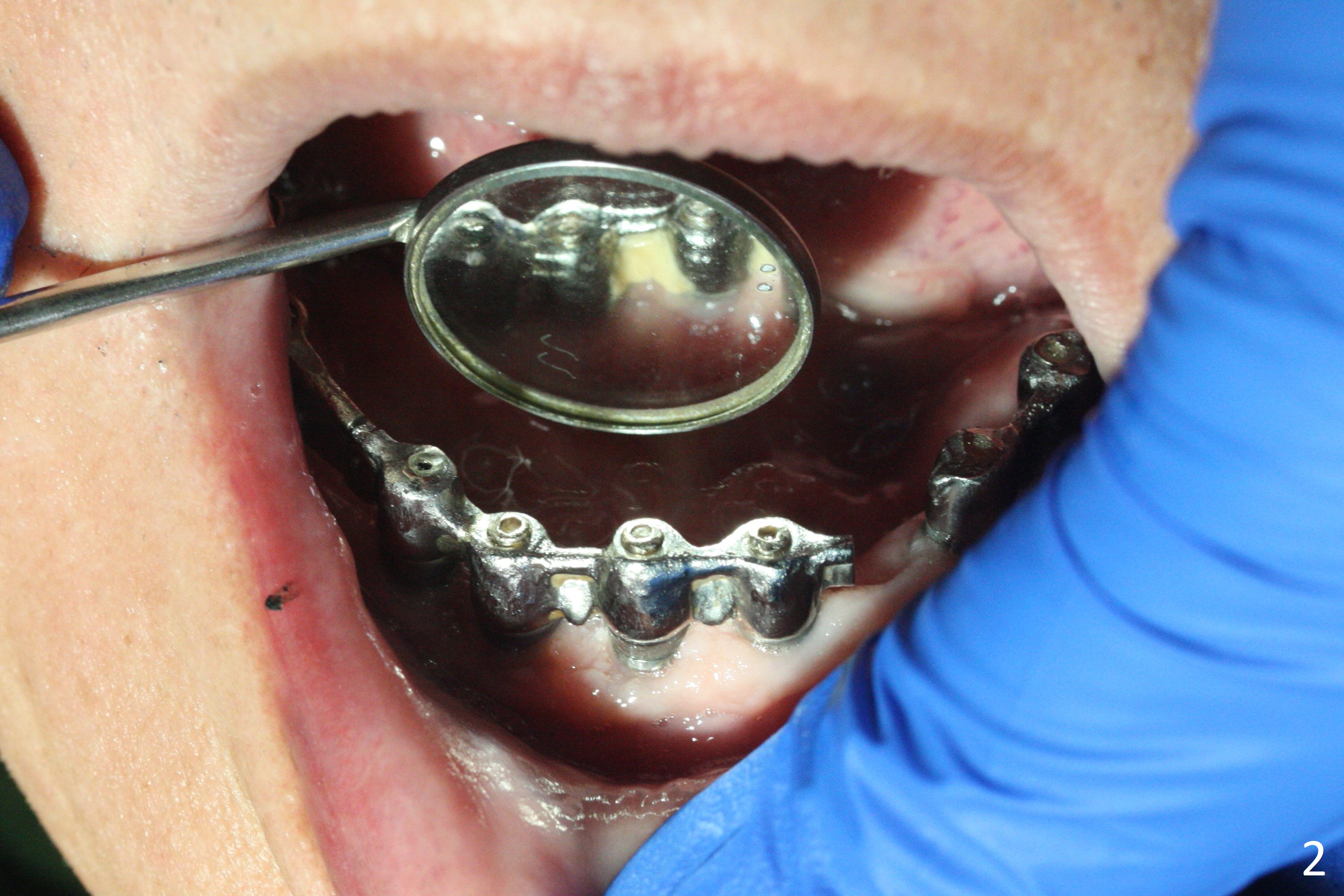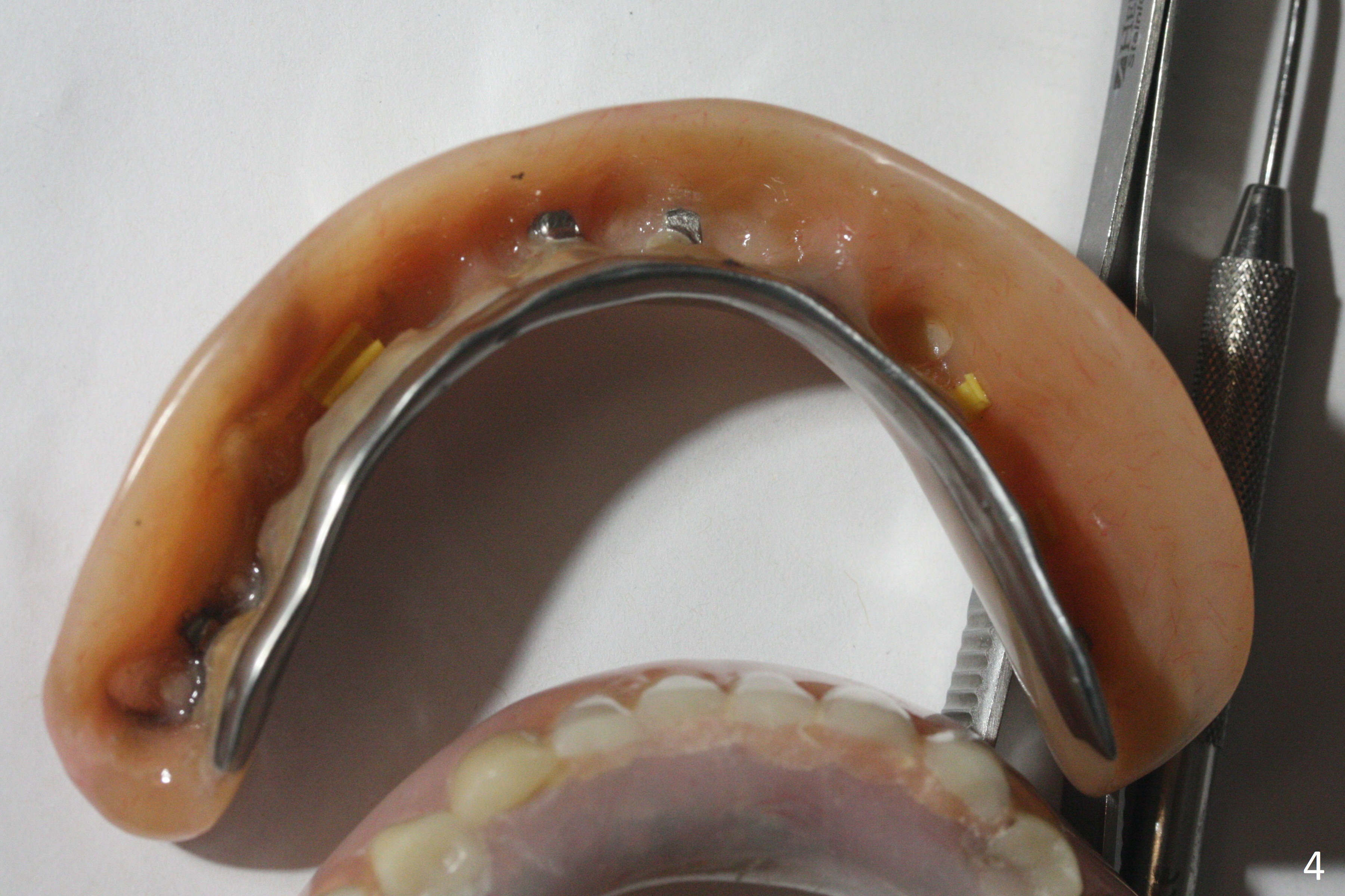 A 77-year-old man presents to clinic with chief complaint of loose lower denture, which is ~ 15 years old (Fig.1-6). The implants were placed ~ 30 years ago. There is wear and crack of the denture teeth (Fig.3). When the denture is remade, make metal occlusal surface at the premolar and molar region. An extra existing denture will be sent to lab for reference. What is the best method to take the lower impression? Block metal framework undercuts? Alginate or PVS?