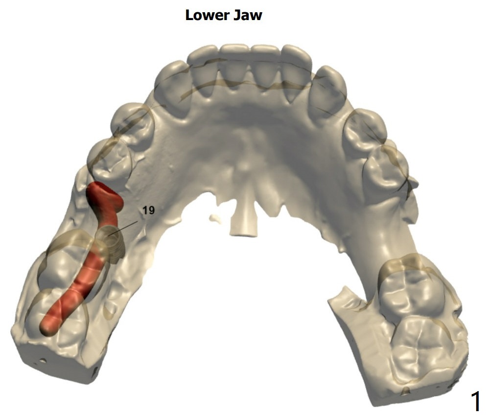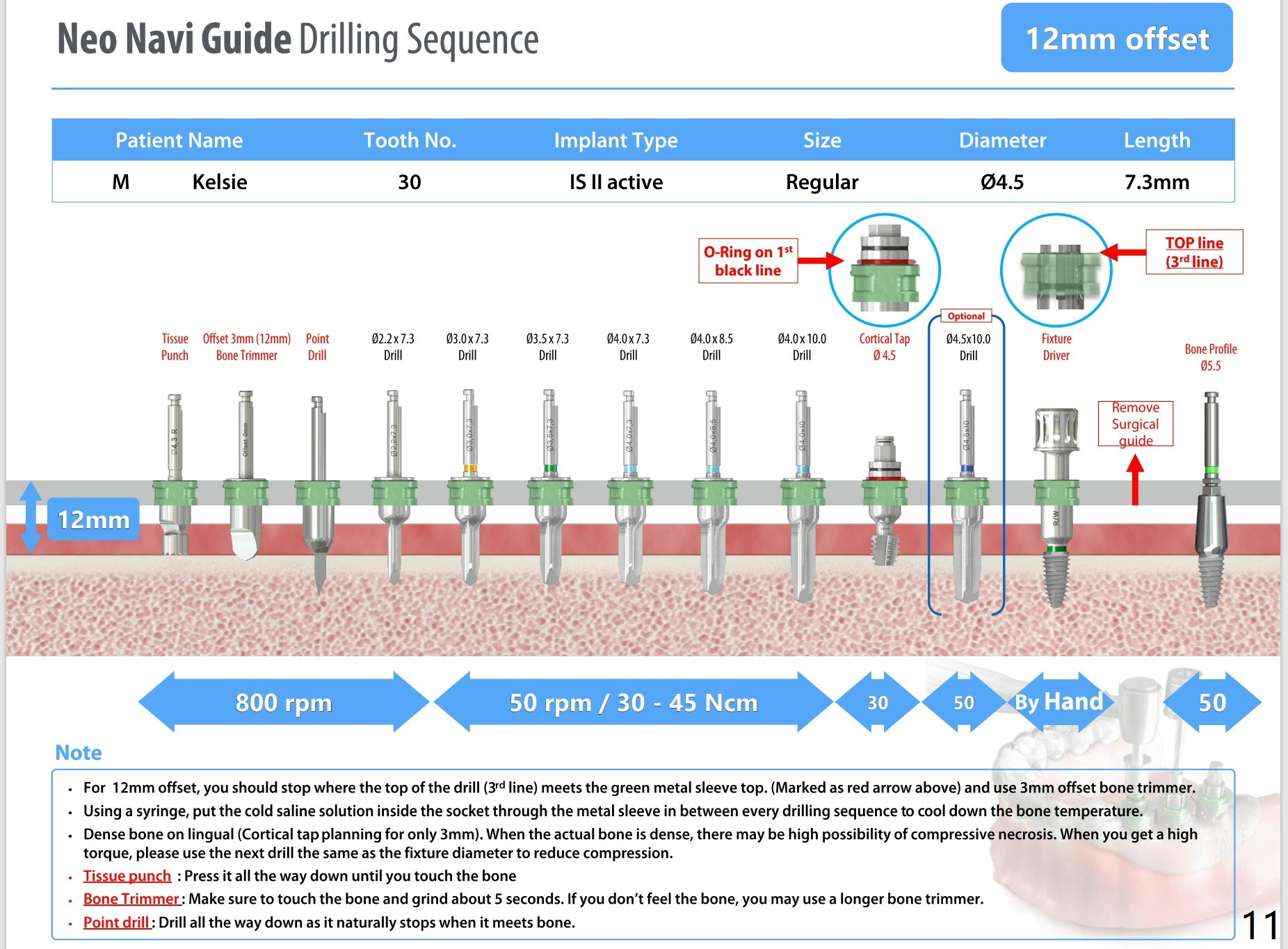43岁女小个子缺失下颌第一磨牙许久,牙槽嵴窄而短,所以植体需要细短。右下颊侧骨板薄,植入后植骨,可以事先切开(角化龈少)或者顺愈合基台塞入。