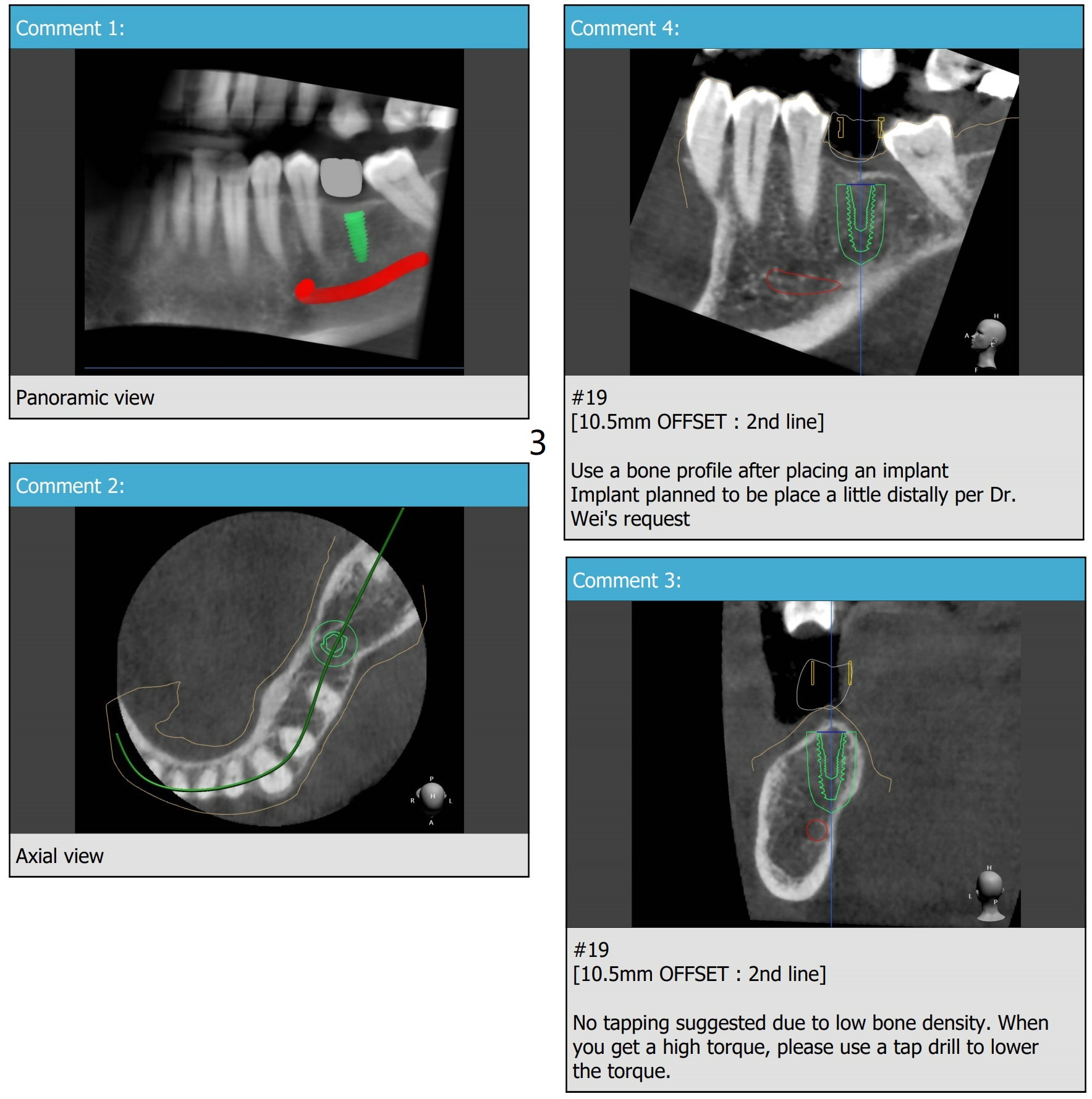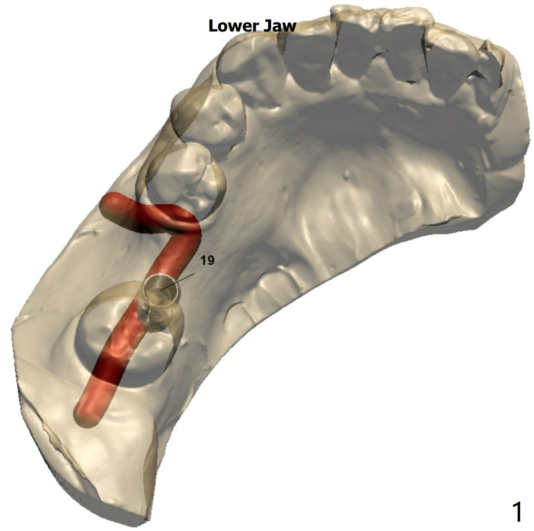 A 57-year-old woman agrees to orthodontically upright #18 associated with #19 implant placement after #12 implant placement.