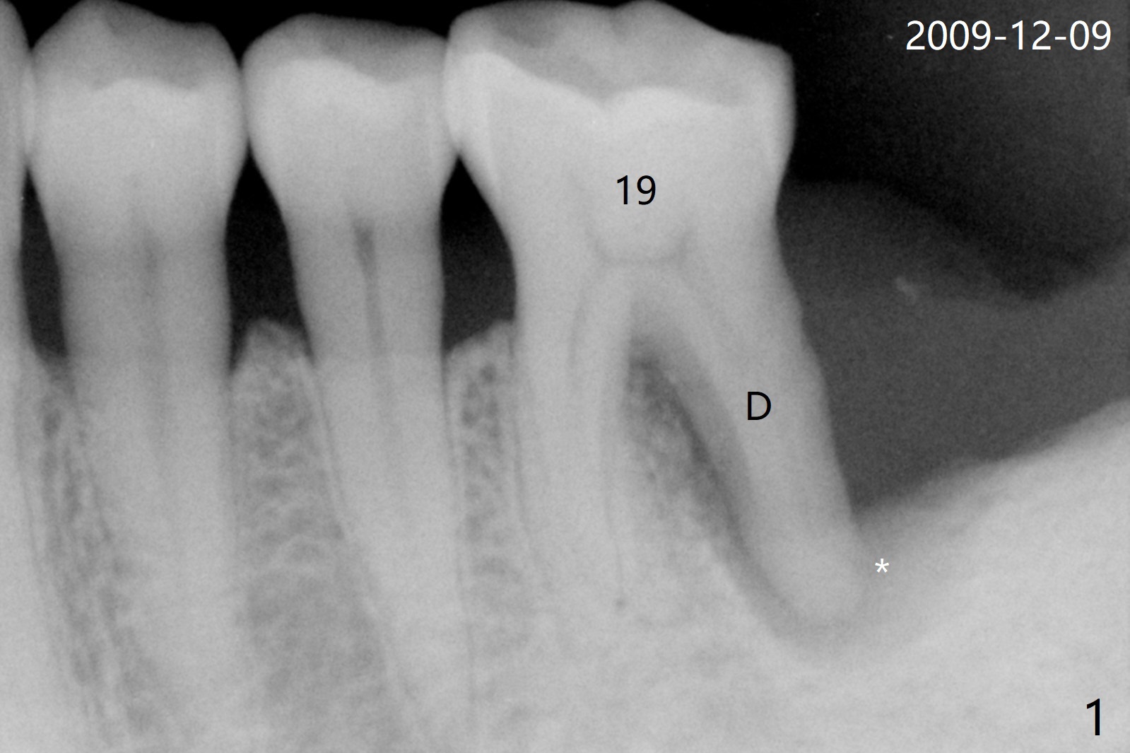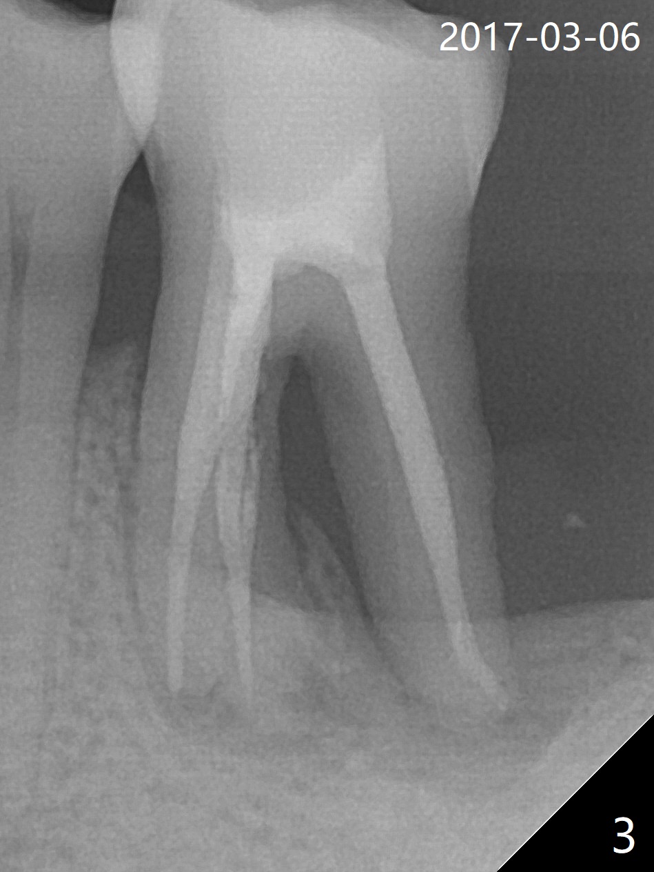 A 56-year-old man had distal gingival erythema at #19 with a fistula (Fig.1). Upon opening the pulpal chamber, the pulp is vital in the mesial canals, while necrotic distal. Root canal therapy is finished 1.5 months later (Fig.2). Although the patient was pleased with the treatment, the gingival infection and fistula did not improve. The tooth mobility increases over the years (Fig.3). He will return for evaluation next Monday. What should be done?