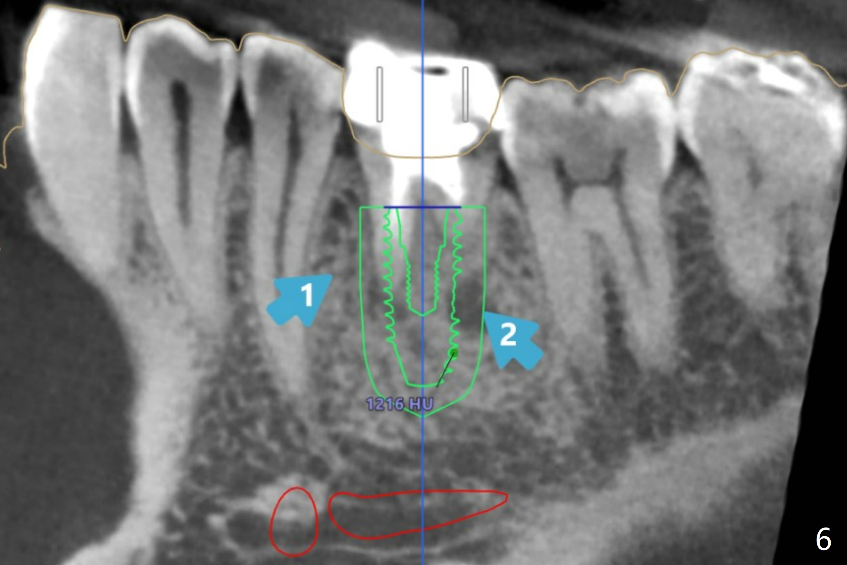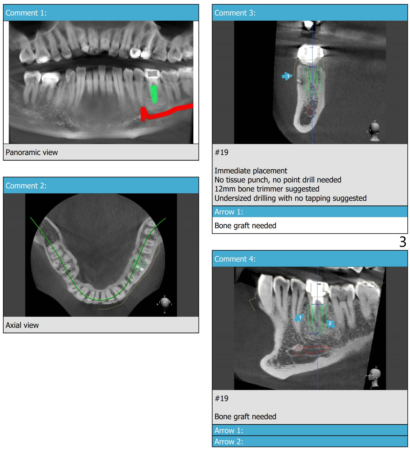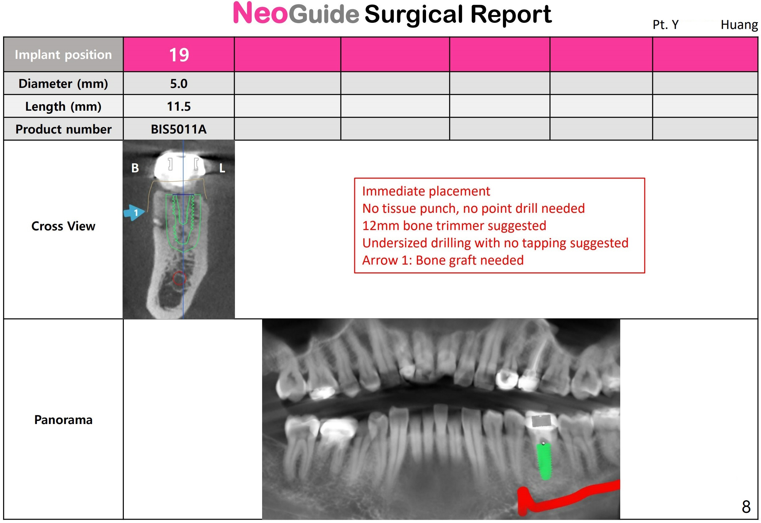 A 54-year-old man decides to extract the tooth #19 because of failure of RCT in the disto-lingual long curved root. Since it is difficult to drill through the roots, the latter will be removed. Use 2.2 mm drill to reach the depth first, look for deviation and take PA. Prepare cowhorn, surgical handpiece and proximators. PRFx1. Use 4.5x11.5 mm drill before placing 5.5x11mm IBS implant.