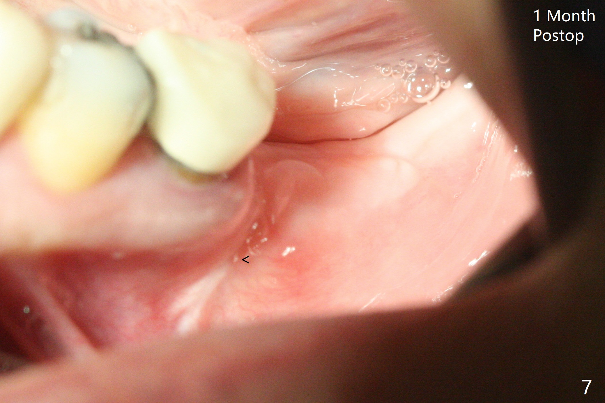 The accessory incision dehiscence heals 1 month postop (Fig.7 <). The paresthesia seems to have been reduced.