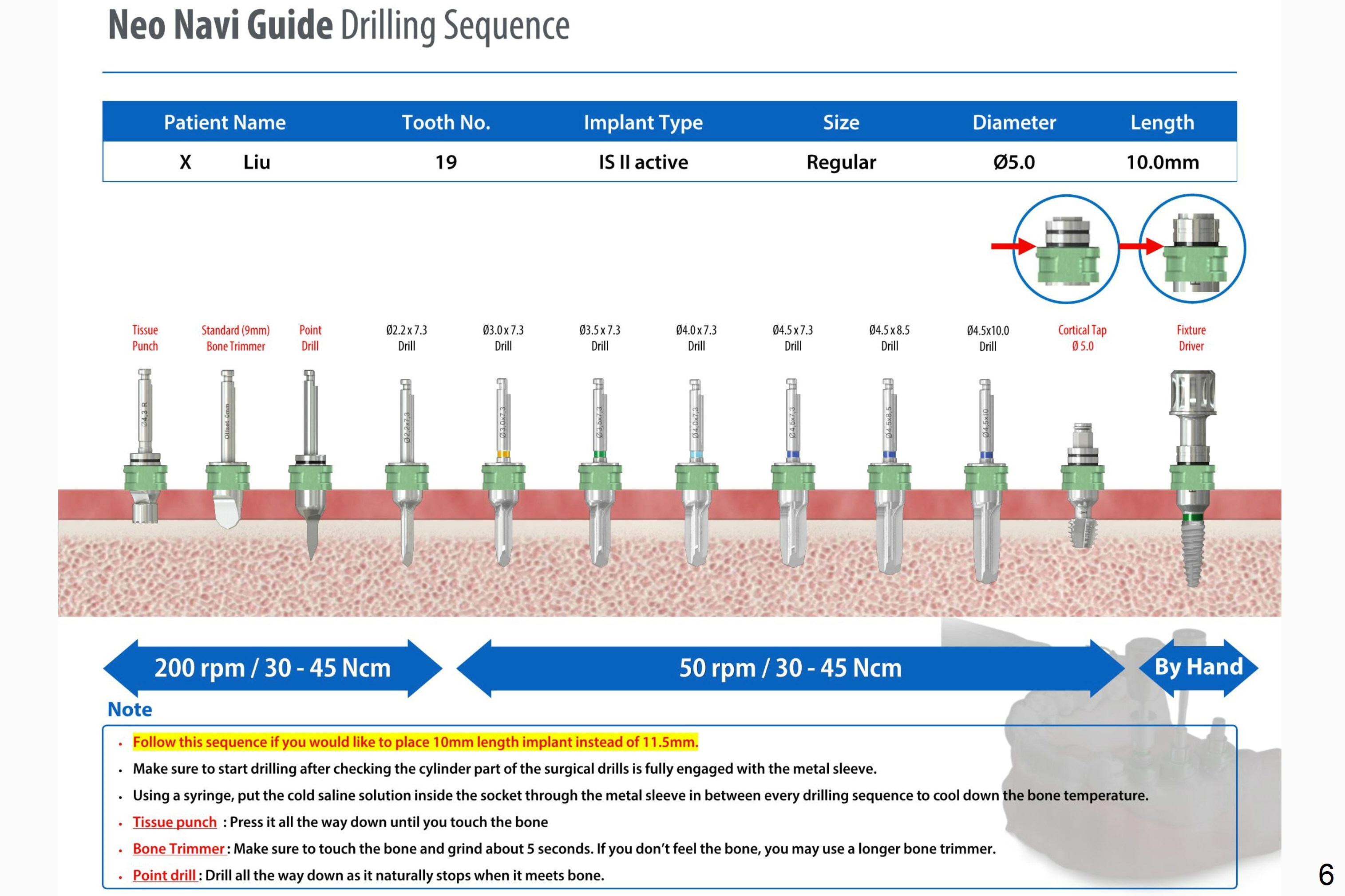 Although the woman is short, her bone at #19 is long enough for 11.5 mm implant (Fig.5). If her mouth opening is limited, the last drill will be 10 mm (Fig.6).