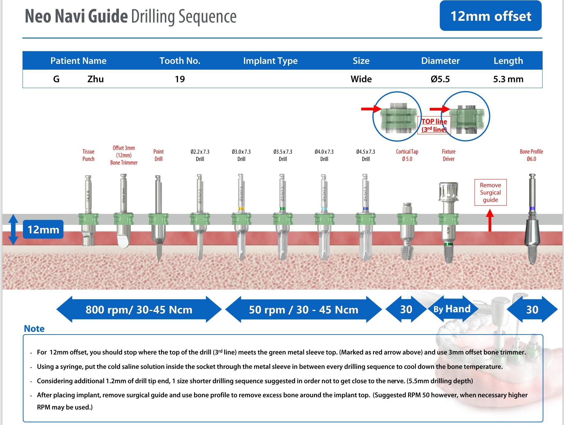 Approxi-mately 1.5 years post #18 and 19 onlay graft failure, the patient returns for #18 and 19 implant redo. The bone at #18 is so limited that implant placement is im-possible. A 5.5x5 mm implant will be placed at #19 with bone graft at #18 and 19. PRFx2. Titanium Reinforced Cytoplast and small fixation pins. 15c. Also prepare 4x5 and 5x5 mm Bicon implant (Titanium V).