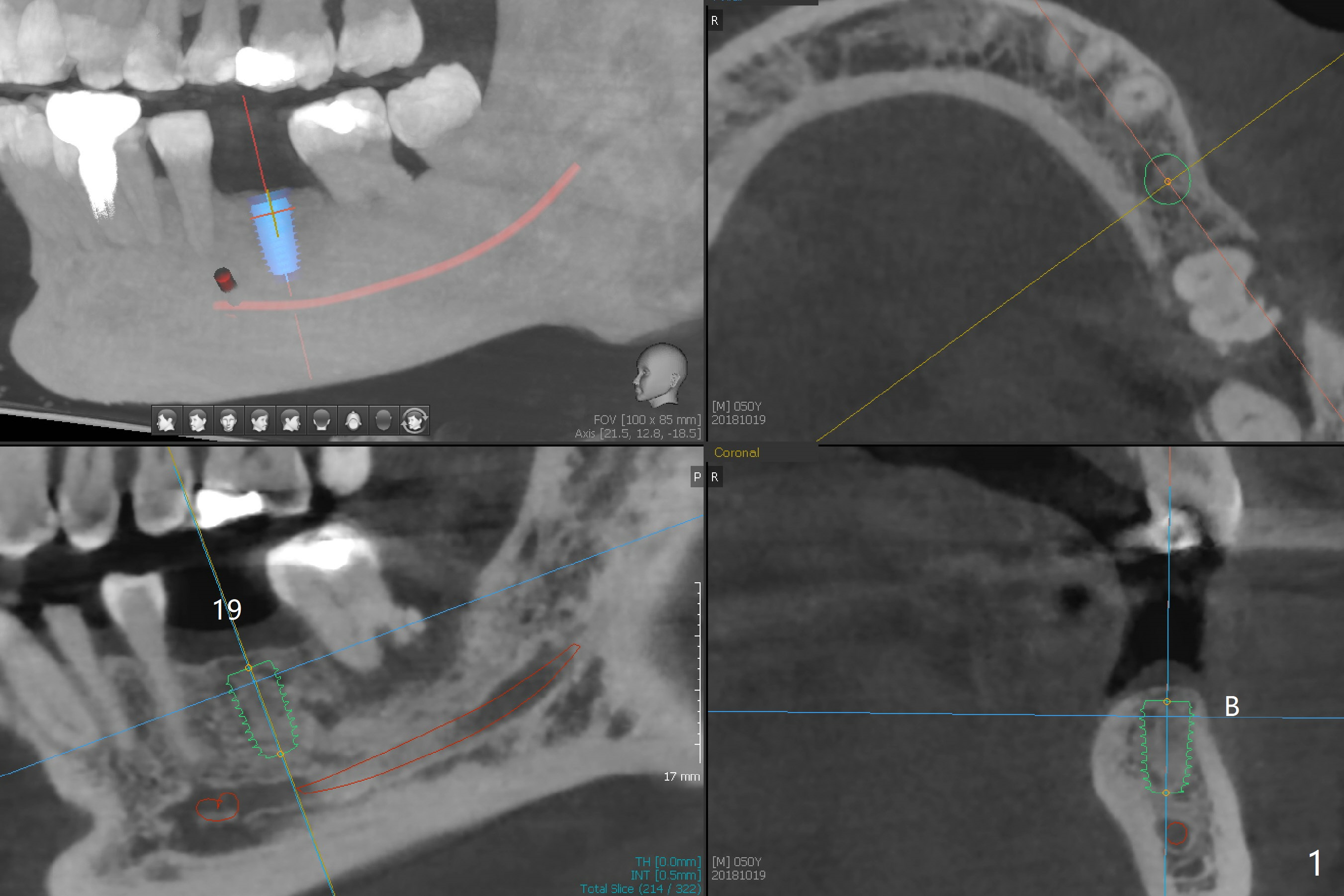 A 50-year-old man requests implant at #19 five months post cementation of crown at #30. Because of short bone, a 5x8.5 mm UF implant will be placed with guide (Fig.1).