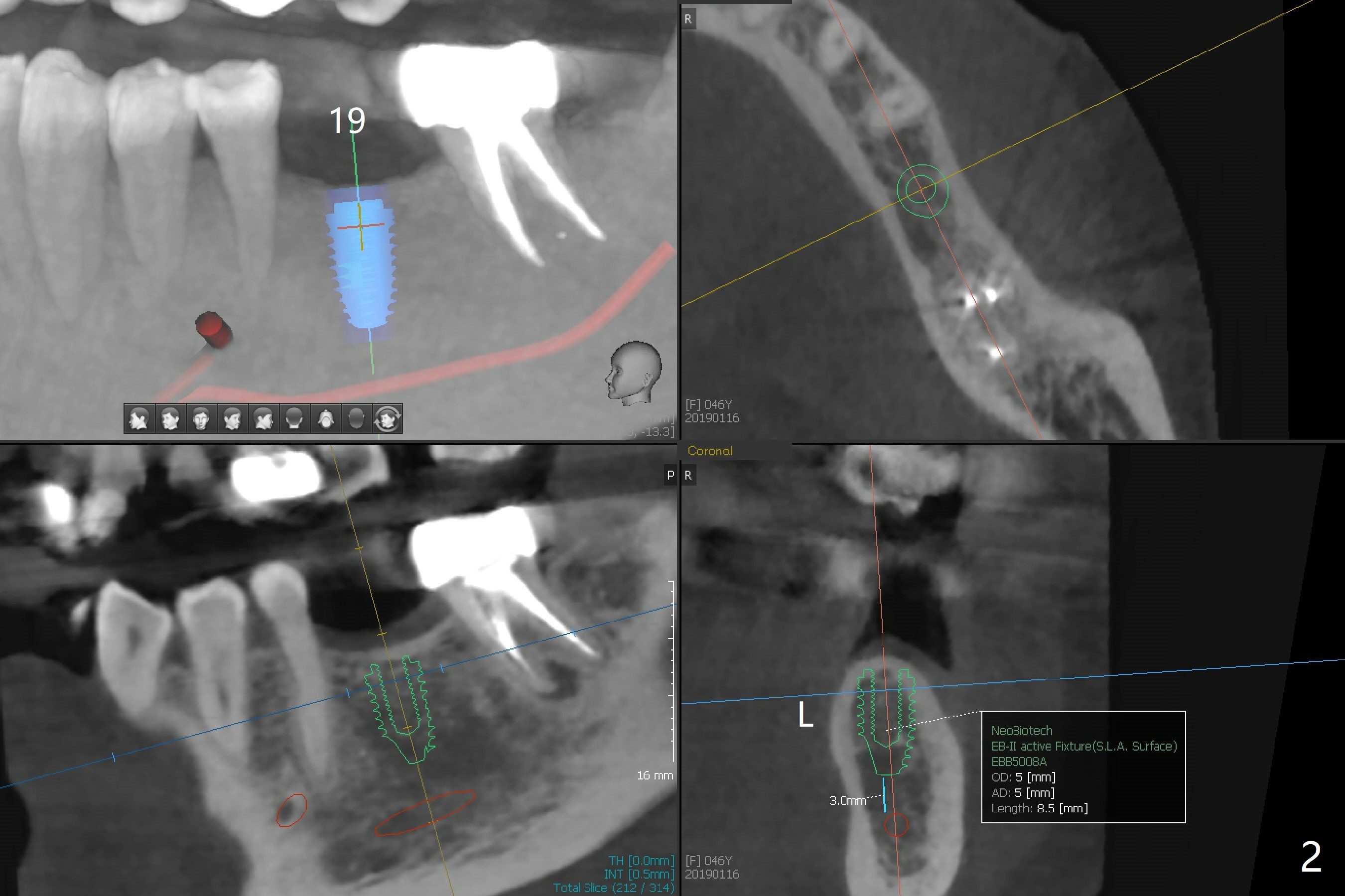 A 46-year-old woman returns for #19 guide 8 and 3 months post cementation at #3 and 30, respectively (Fig.1). A 5x8.5 mm implant appears to be appropriate for the site (Fig.2).