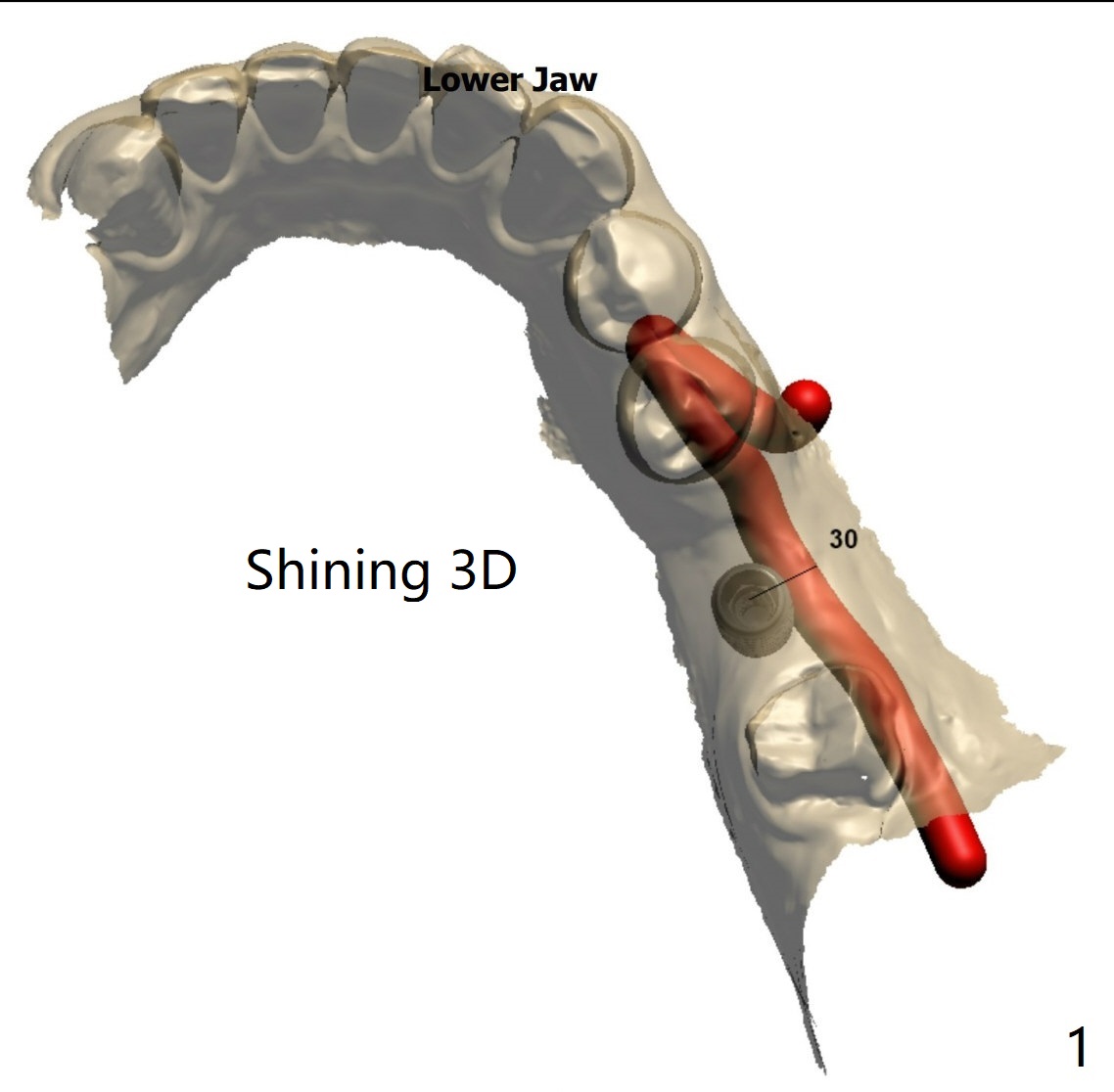 I am a general practitioner in Atlanta, Georgia. We have sent CBCT DICOM file electronically and PVS impression by mail to a lab in Los Angels, California for surgical guide for implant for more than 3 years. The mail may take as long as 7 days to deliver. The turn around time for guide is usually more than 2 weeks. This is not good for emergency cases. Finally we purchased Shining Oral Scanner. STL file from the scanner is able to be sent to the lab in no time. But for safety, we still send impression for first 10 cases in case our scanning is imperfect. Last Tuesday we got good scan for a case (Fig.1) and decided not to send impression in the same time. In fact the lab accepted the STL file (Fig.2,3 brown lines), which coincides with CBCT image. We were notified to schedule a zoom meeting to discuss treatment planning 1-2 days later. This is huge improvement in time and efficiency. A beautiful screw retained crown is designed (Fig.4). How clear and distinct the 3 D image is!