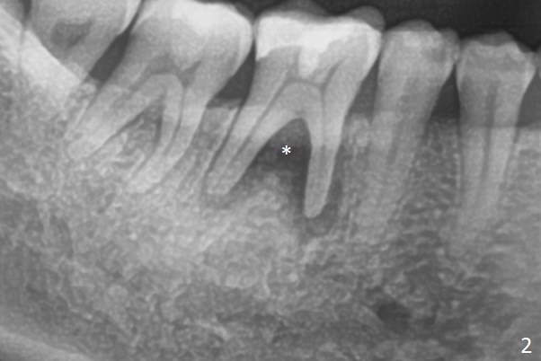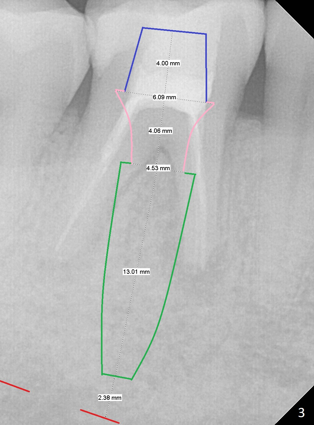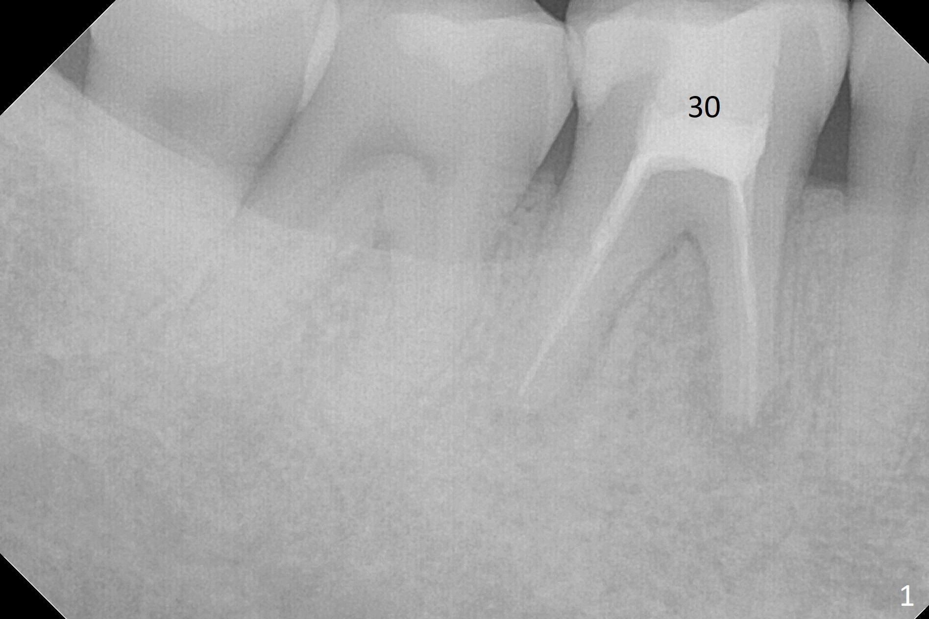A 45-year-old man fractures the distolingual cusp of the tooth #30 subgingival (Fig.1). In fact RCT restores the septal bone, as compared to Fig.2. Initial depth at the septum is 13 mm (Fig.3).