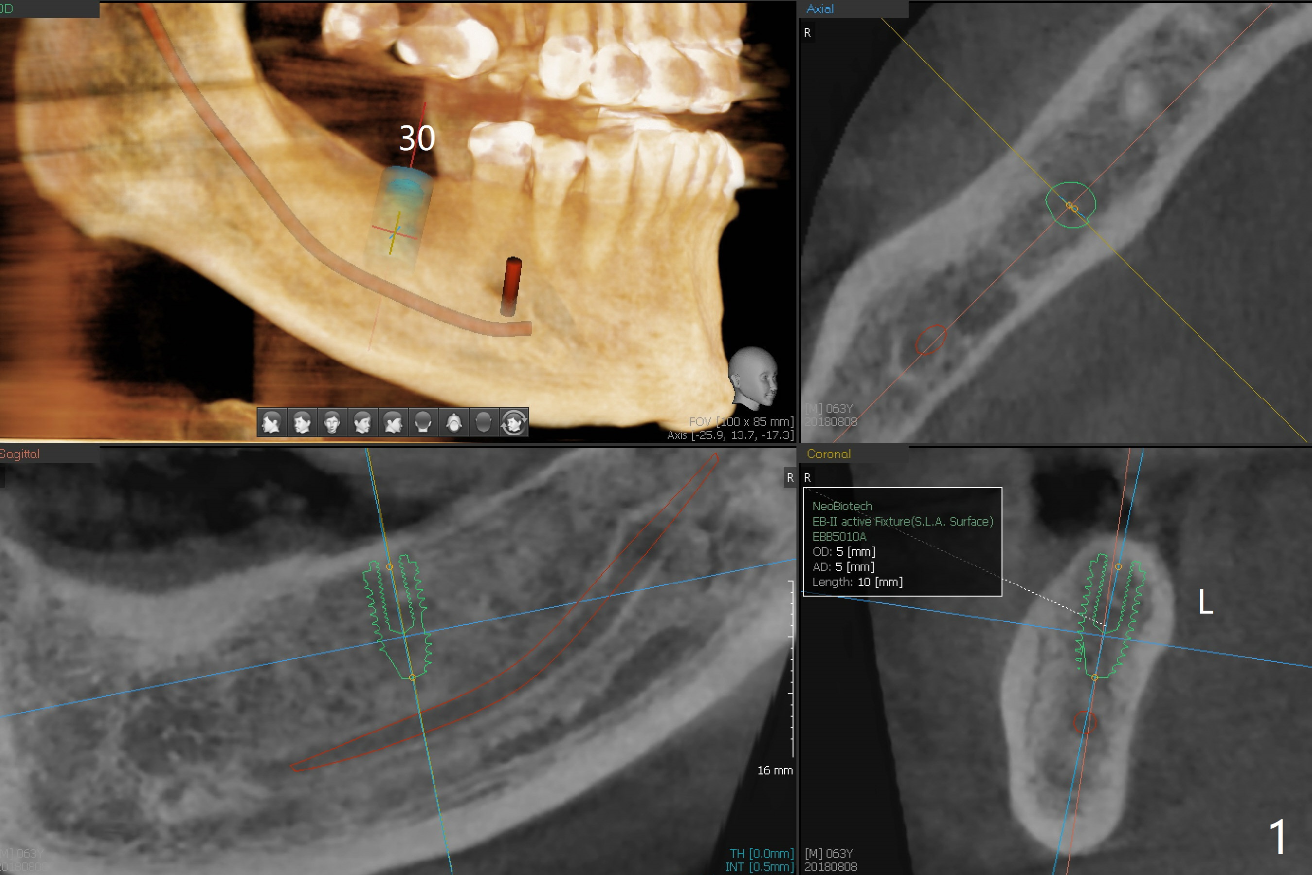 A 63-year-old man agrees to have an implant at #30 with guide 7 months post cementation of a crown at #3. For convenience, add an additional sleeve at #31 as long as there is enough vertical restorative space in case he changes his mind in the near future.