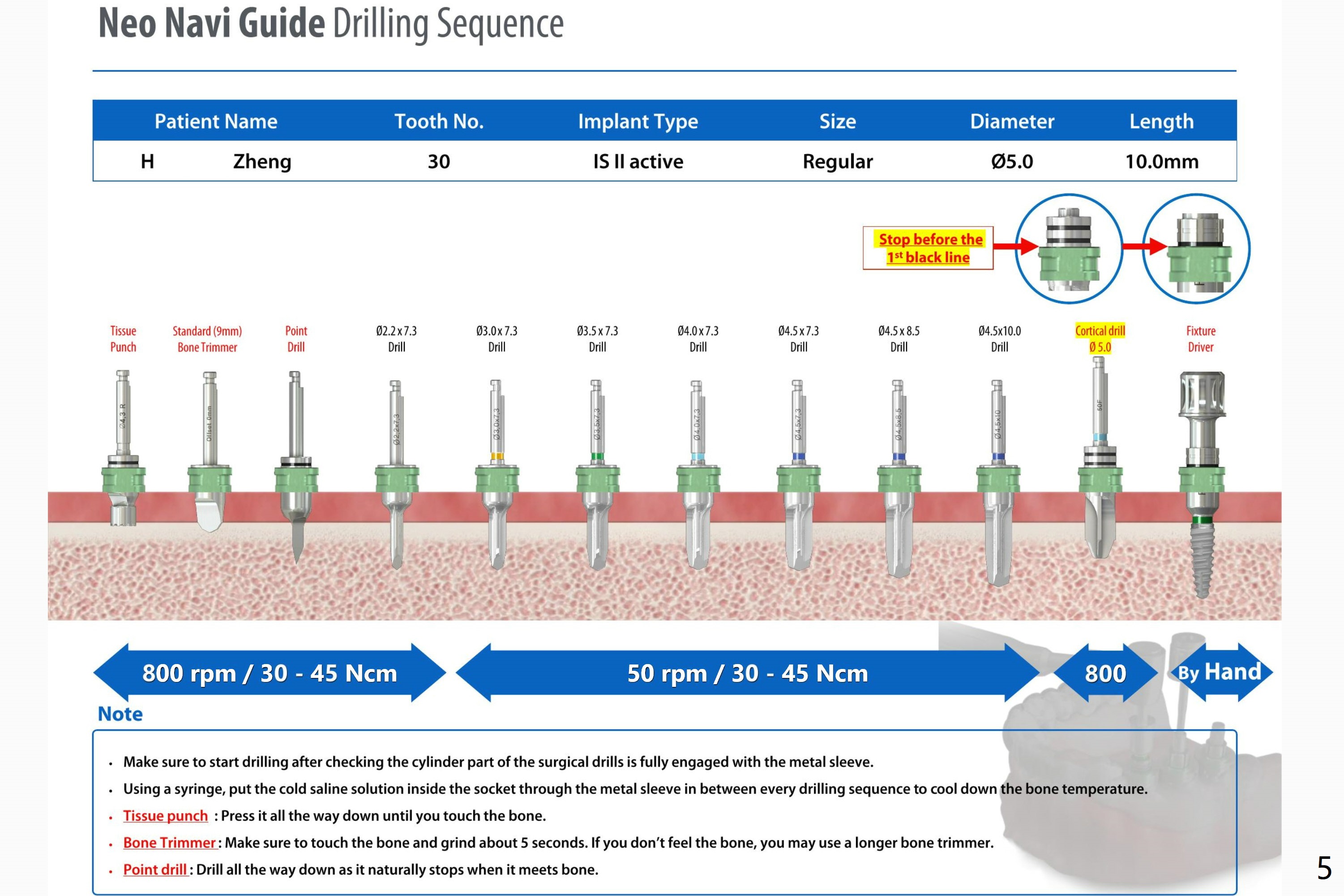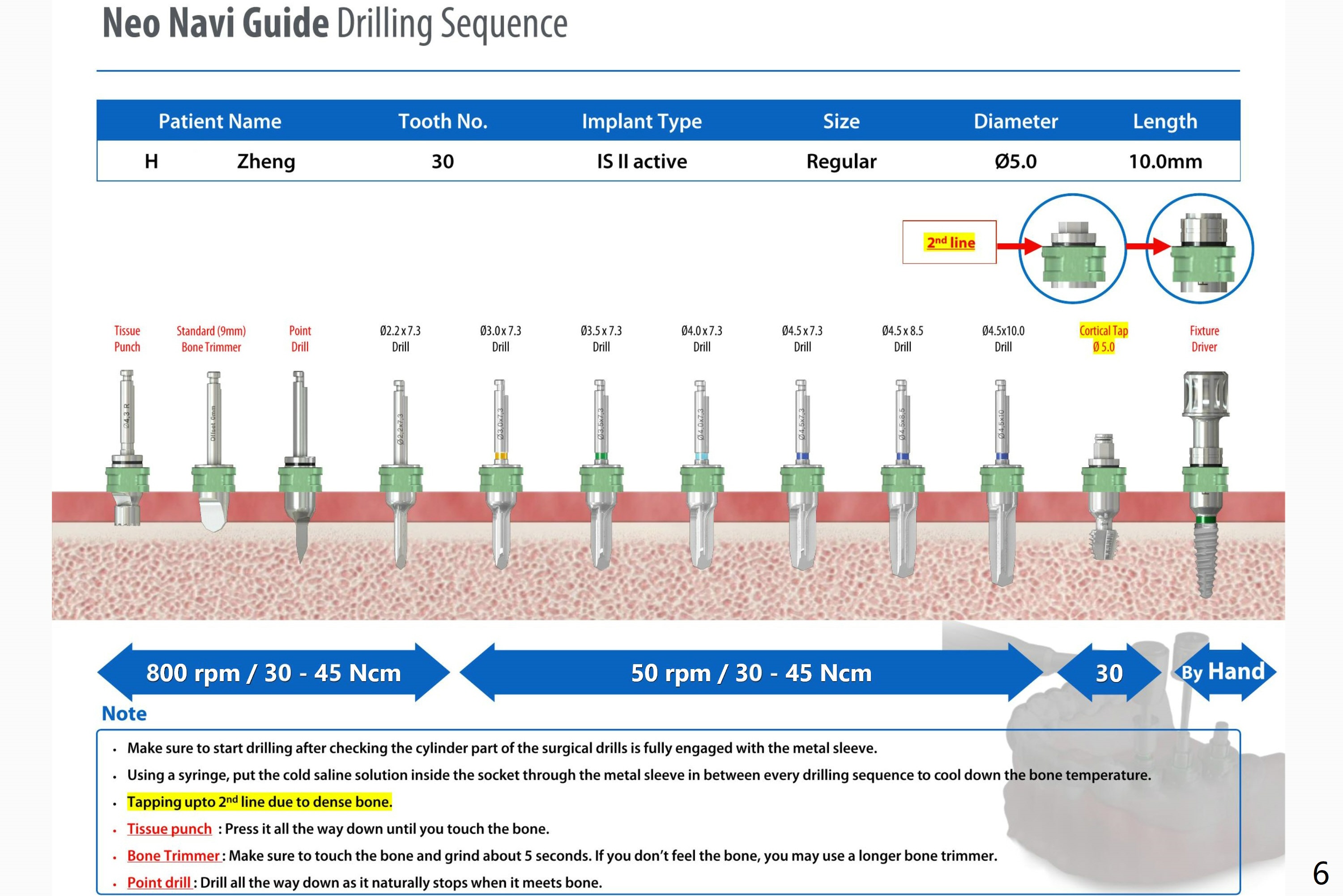 When bone density is high, a cortical drill in stead of cortical tap is used prior to implant placement.
