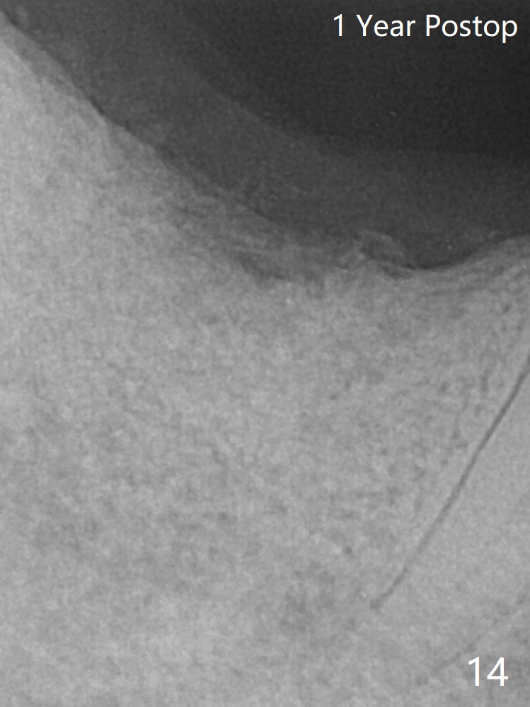There is mild loss of bone graft in the middle of the superficial area (Fig.14).