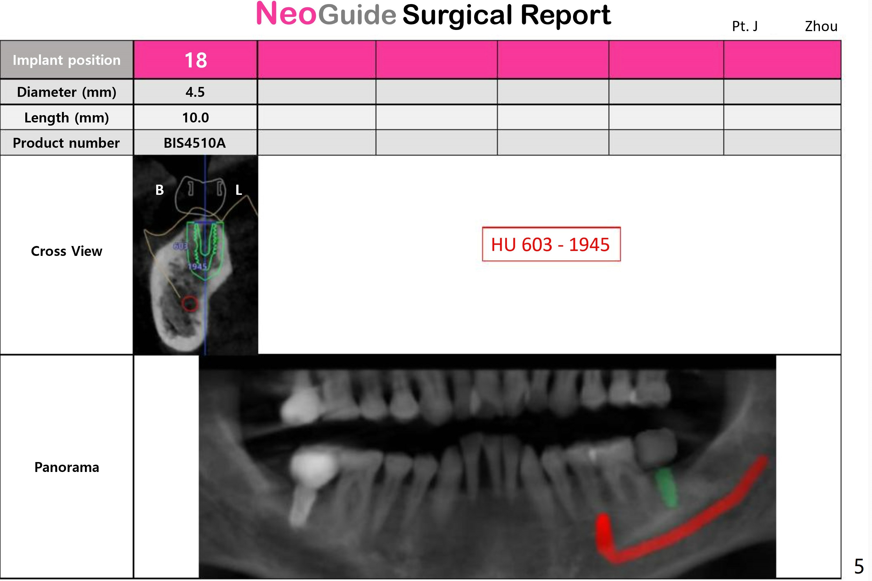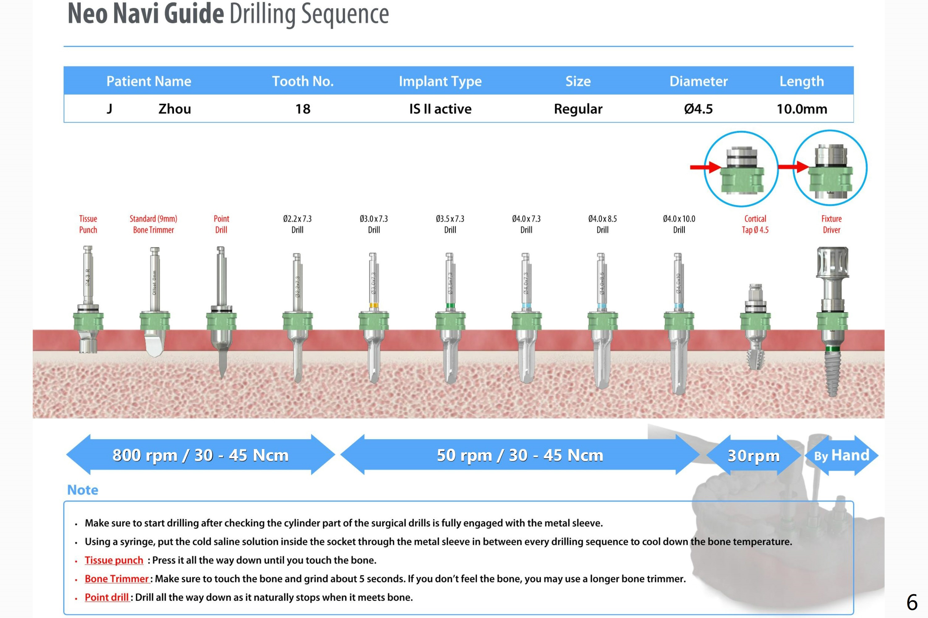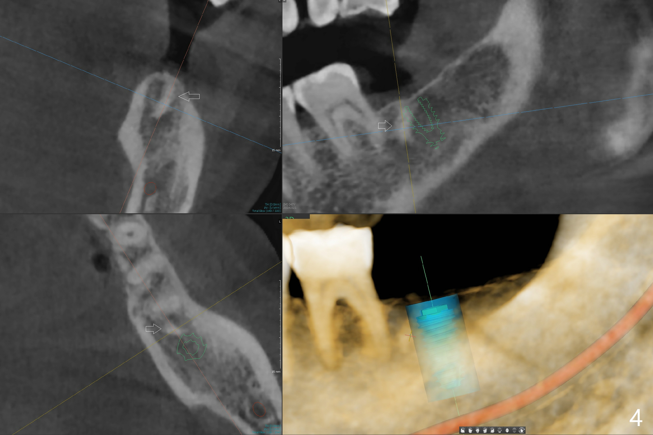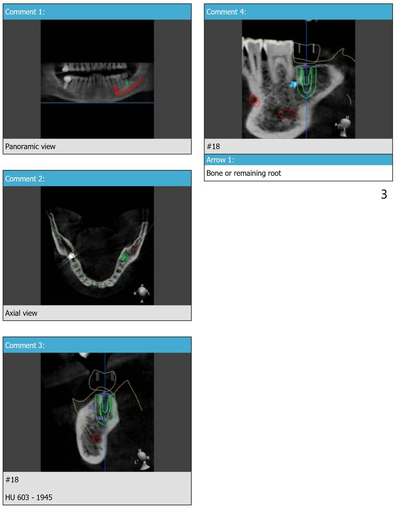 There is a piece of radiopaque material in the mesial aspect at the site of #18 (Fig.3,4 arrow). After osteotomy and before implant placement, remove the guide to check whether it is dense bone or residual root. Prepare root tip picks. Encourage good oral hygiene (water pik) and postop antibiotic, since he is a diabetic.