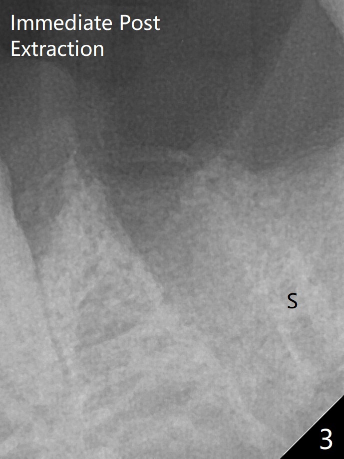 术后三个月牙槽嵴宽(图六);高度稍微减低(图七)。