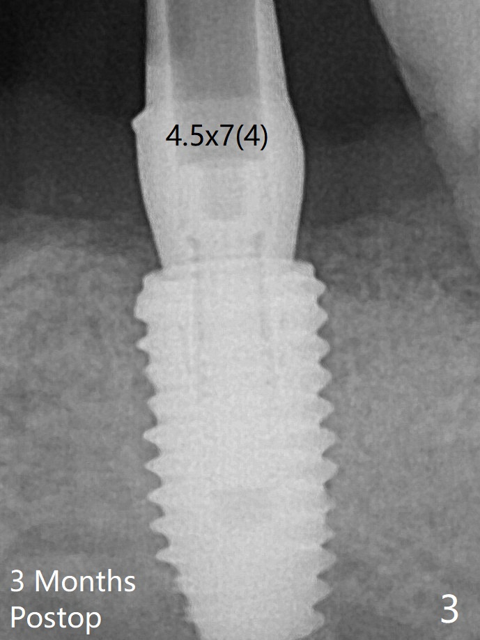 更换4.5x7(4)毫米UF基台就位仿佛改善(图三),降低基台高度后取模。