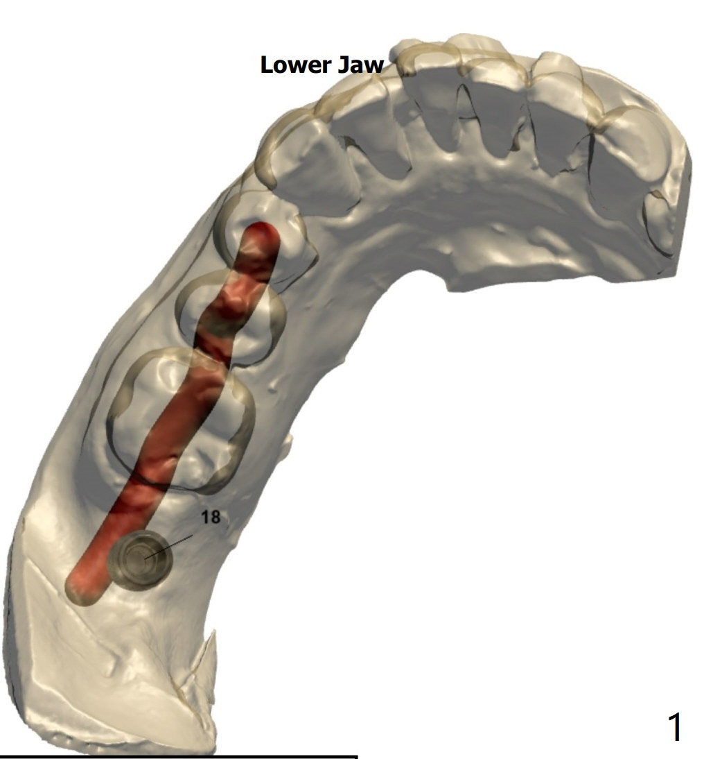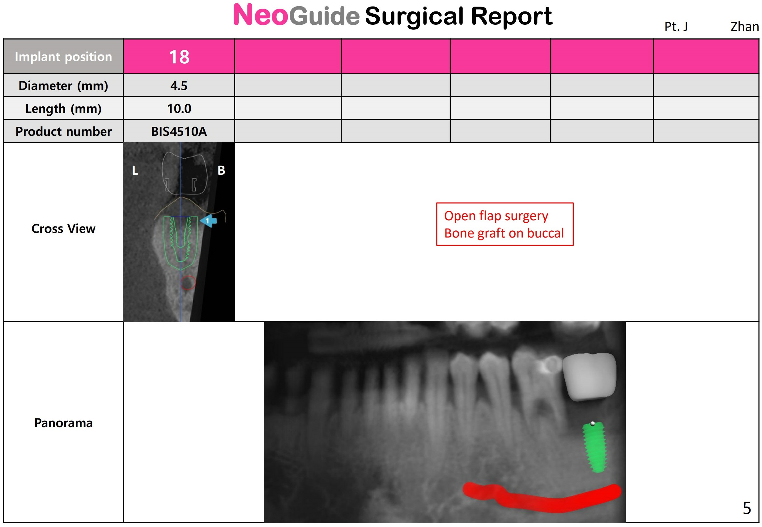 18号牙远中牙槽窝植骨术后5个月,病人回来植牙。由于近中骨质吸收严重,植体植入表浅,需要再次植骨。植骨范围大(颊侧,近中)以及19远中,需要粘性骨粉以及PRF膜x2。