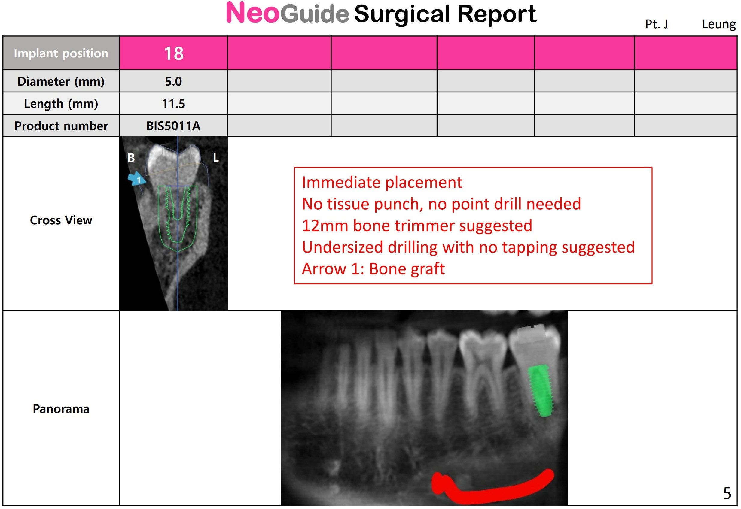 Long Implant Relative to Guide