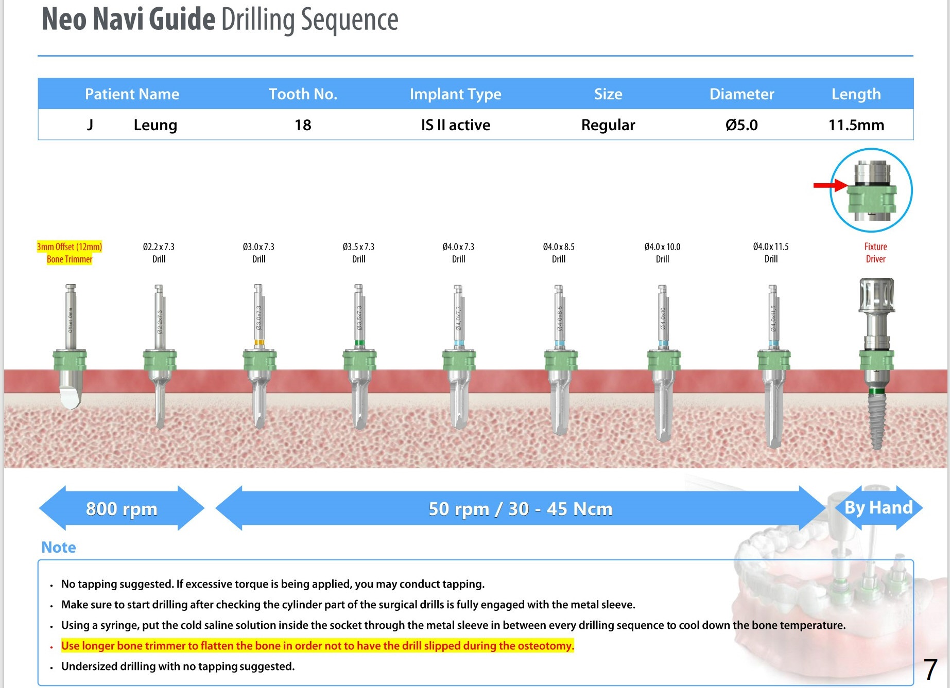 Prepare the adult bite block for long drill and implant. Section off the crown, keep the roots for osteotomy. Use a short (trimmed) temporary abutment to keep bone graft in place securely. Return to No Caries 植牙,导板与正畸 Xin Wei, DDS, PhD, MS 1st edition 11/05/2020, last revision 01/10/2021