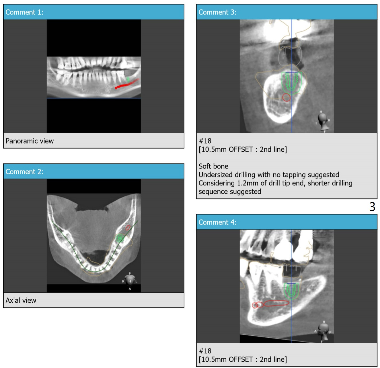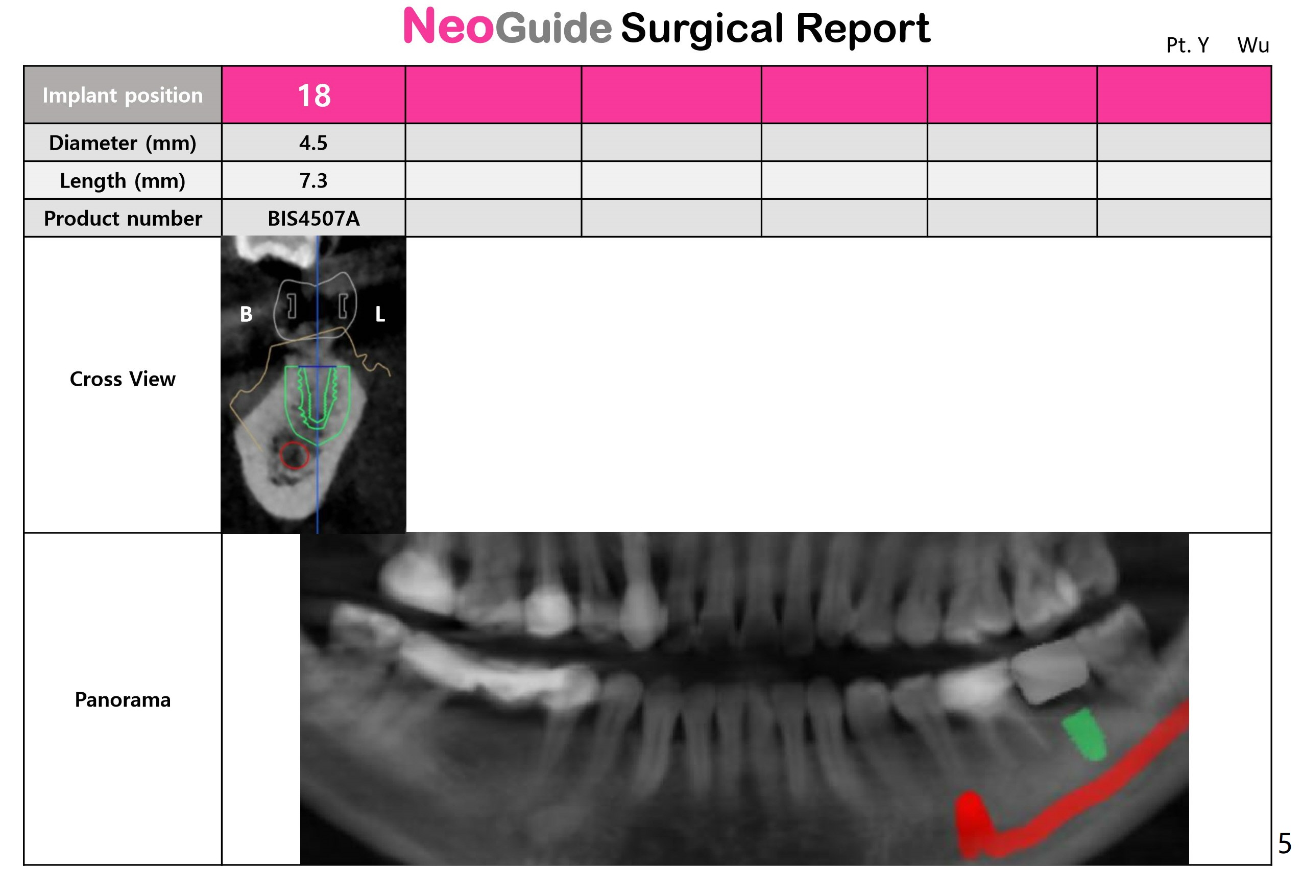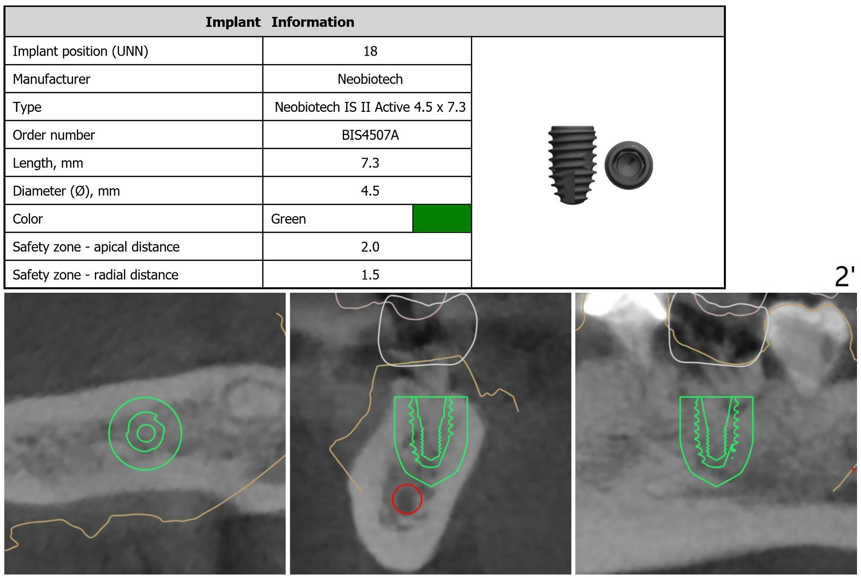 Implant changes from 5x7.3 mm (Fig.2) to 4.5x7.3 mm (Fig.2') to reduce postop bone resorption.