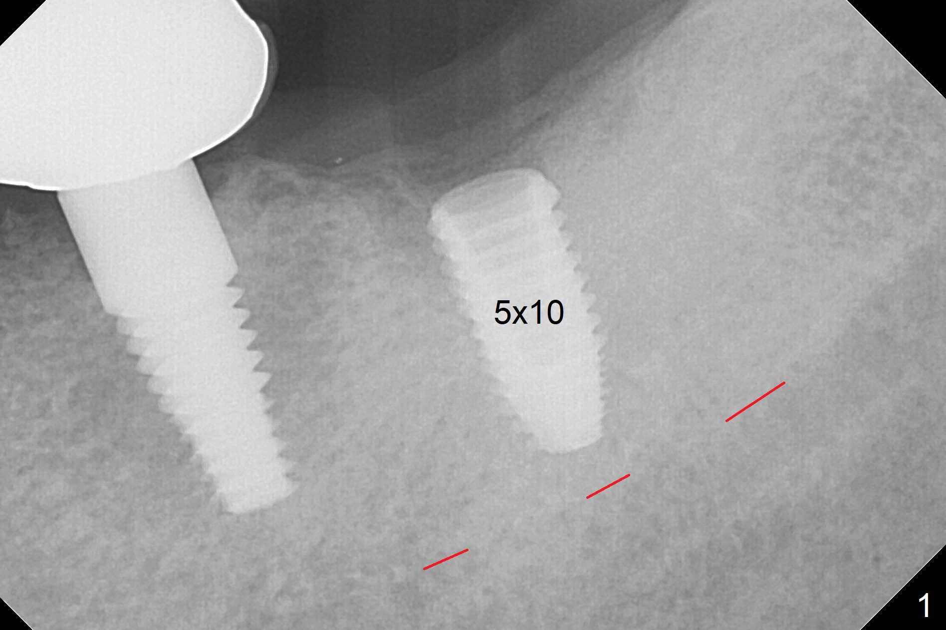 appears to sink down ~ 1 mm. The last drill and a 5x10 mm implant are