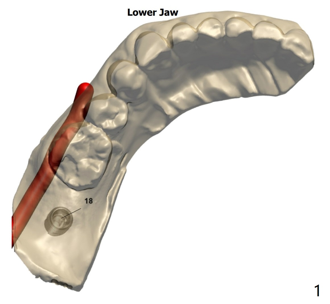54岁男为了利用保险,在没完成上颌牙齿矫正前,做左下7种植。由于厚的舌侧骨板阻挡,植体稍微小些短些(5x10与4.5x8.5毫米)。