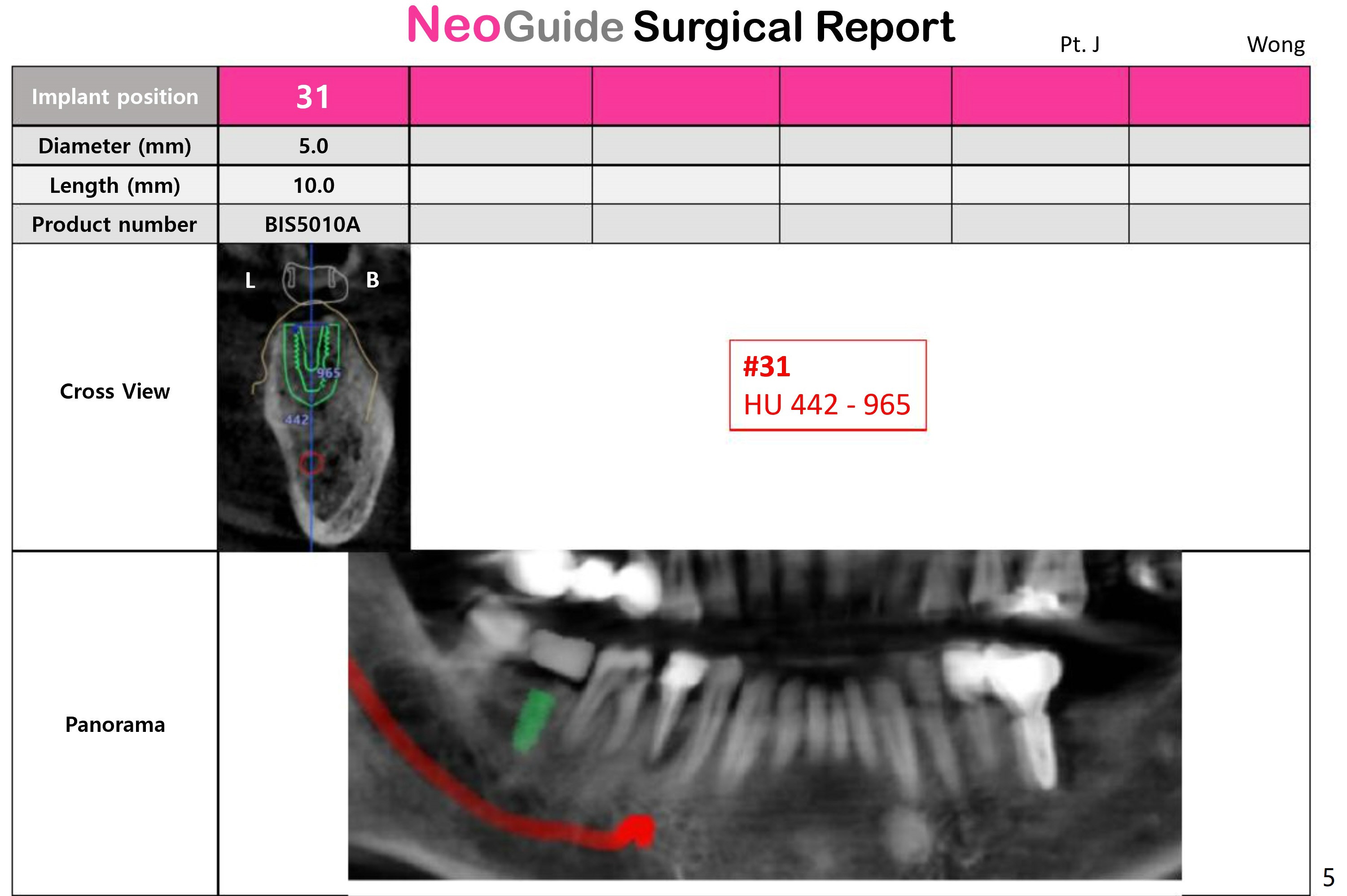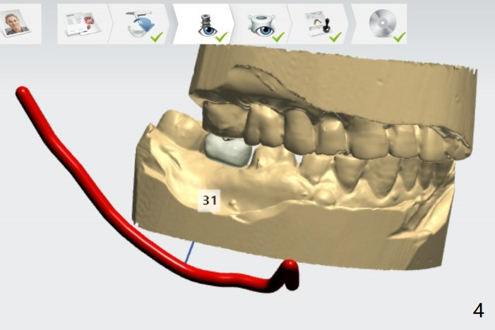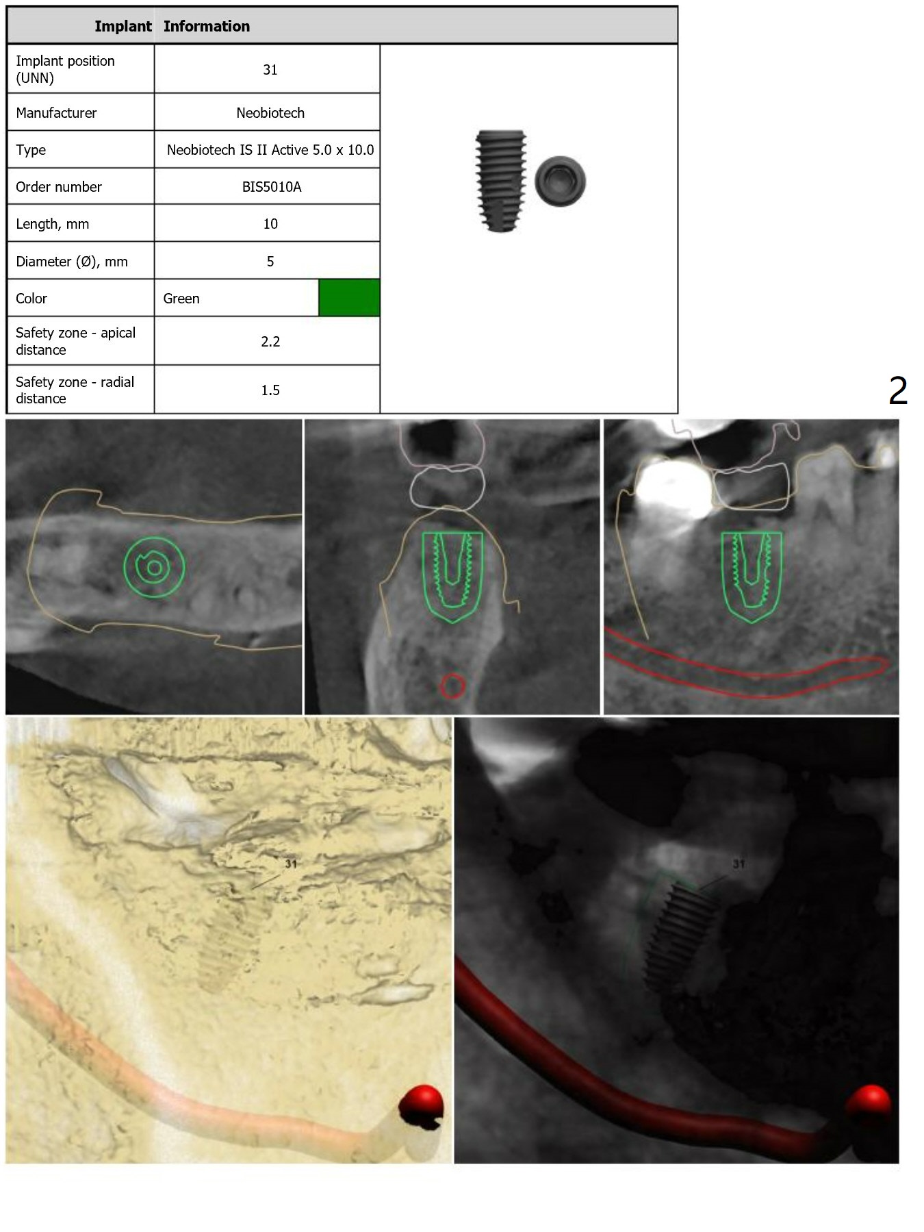 The distal crest is lower than the mesial one. The 5x10 mm implant is level with the distal crest (Fig.2).