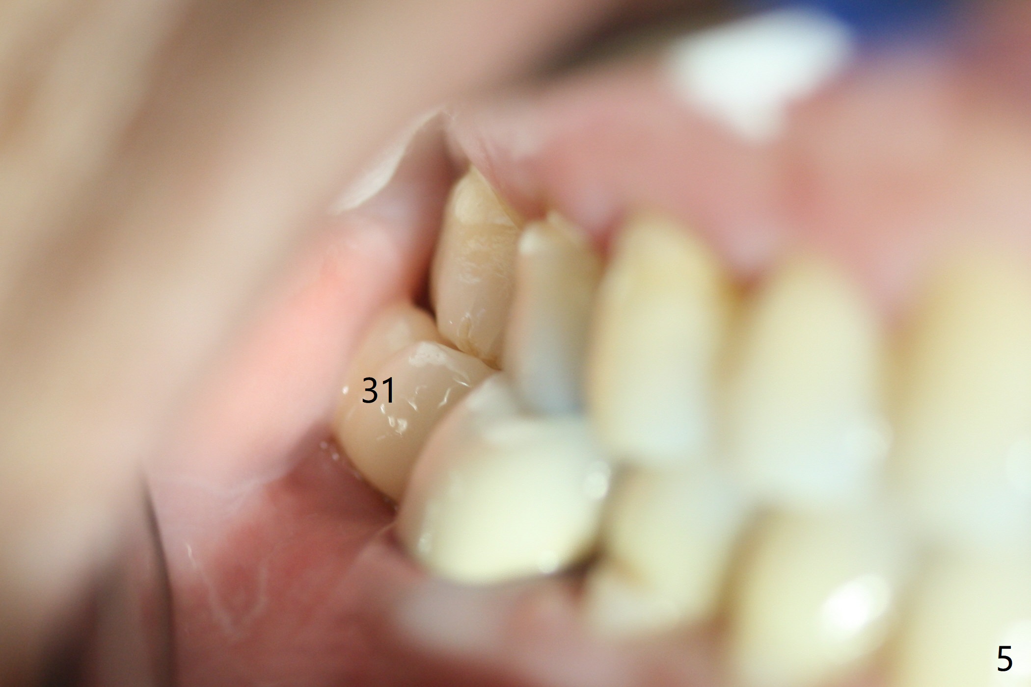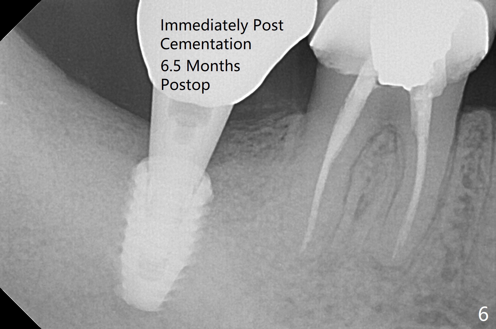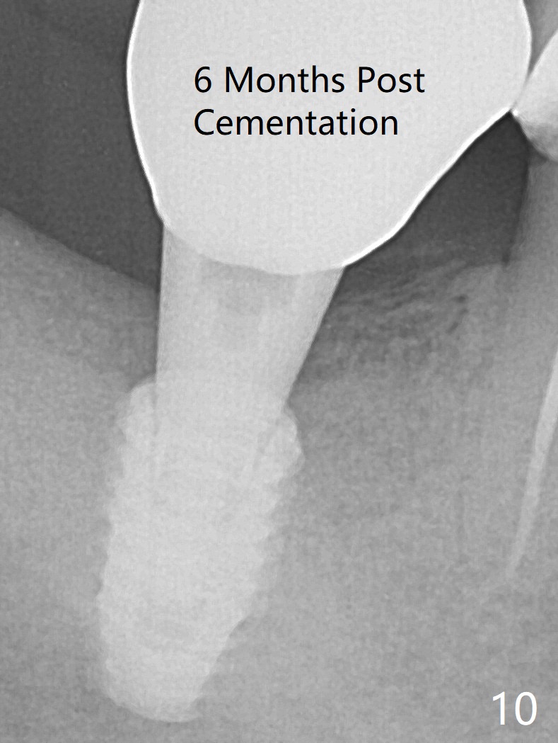 design. Immediately post cementation PA confirms the implant distal placement (Fig.6).