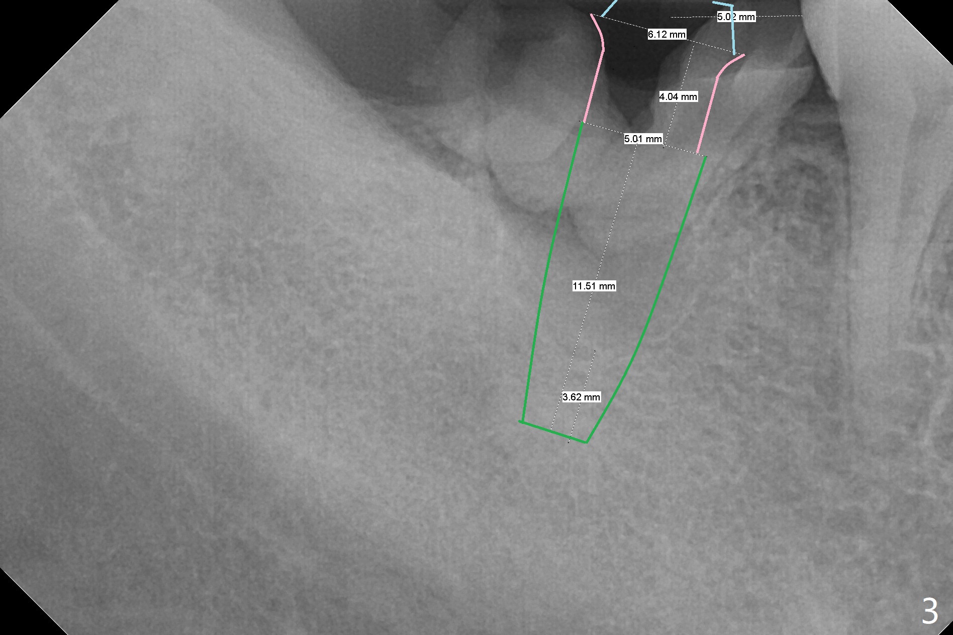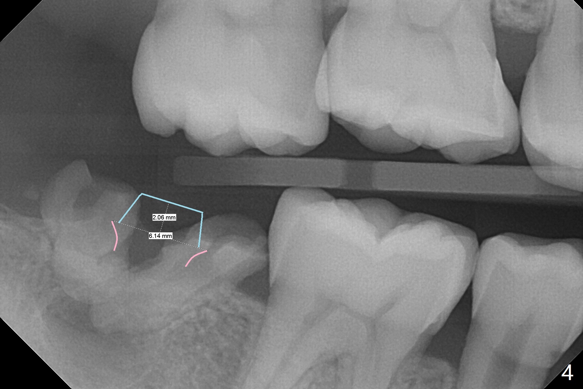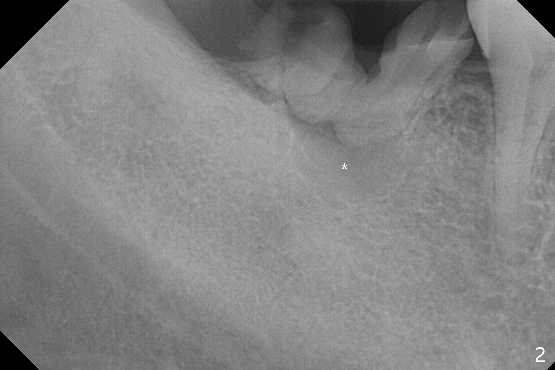 A 39-year-old man finishes orthodontic treatment without intrusion of the upper 2nd molar (Fig.1). He is reluctant for mini-implant placement for intrusion. After extraction of the tooth #31 with periapical radiolucency (Fig.2 *), a 5x11(4) mm Magicore will be placed with guide (Fig.3). Following osteointegration (Fig.4), a burn out core is going to be placed (Fig.5 brown, inside metal, outside plastic). With proper height adjustment, a provisional is fabricated around the core with acrylic (Fig.6 white). If the provisional keeps breaking down under occlusion, the case will be sent to lab for a screw retained crown with unfinished rough occlusal surface so that a thin layer restoration material able to be laid chair-side (acrylic or suction down material). Over time, the opposing tooth will be intruded (Fig.7 arrow).