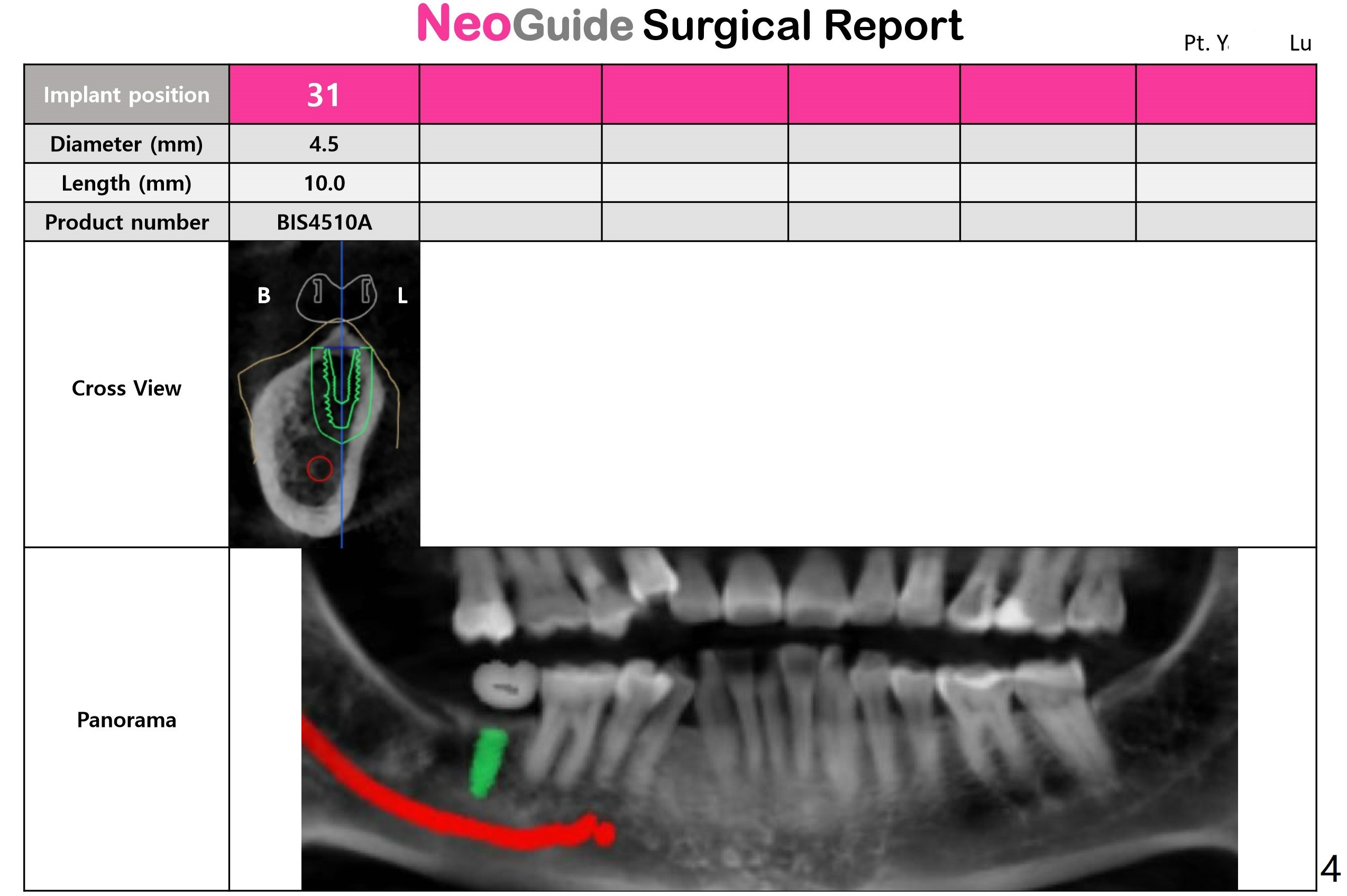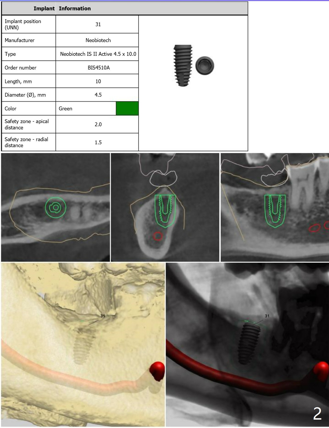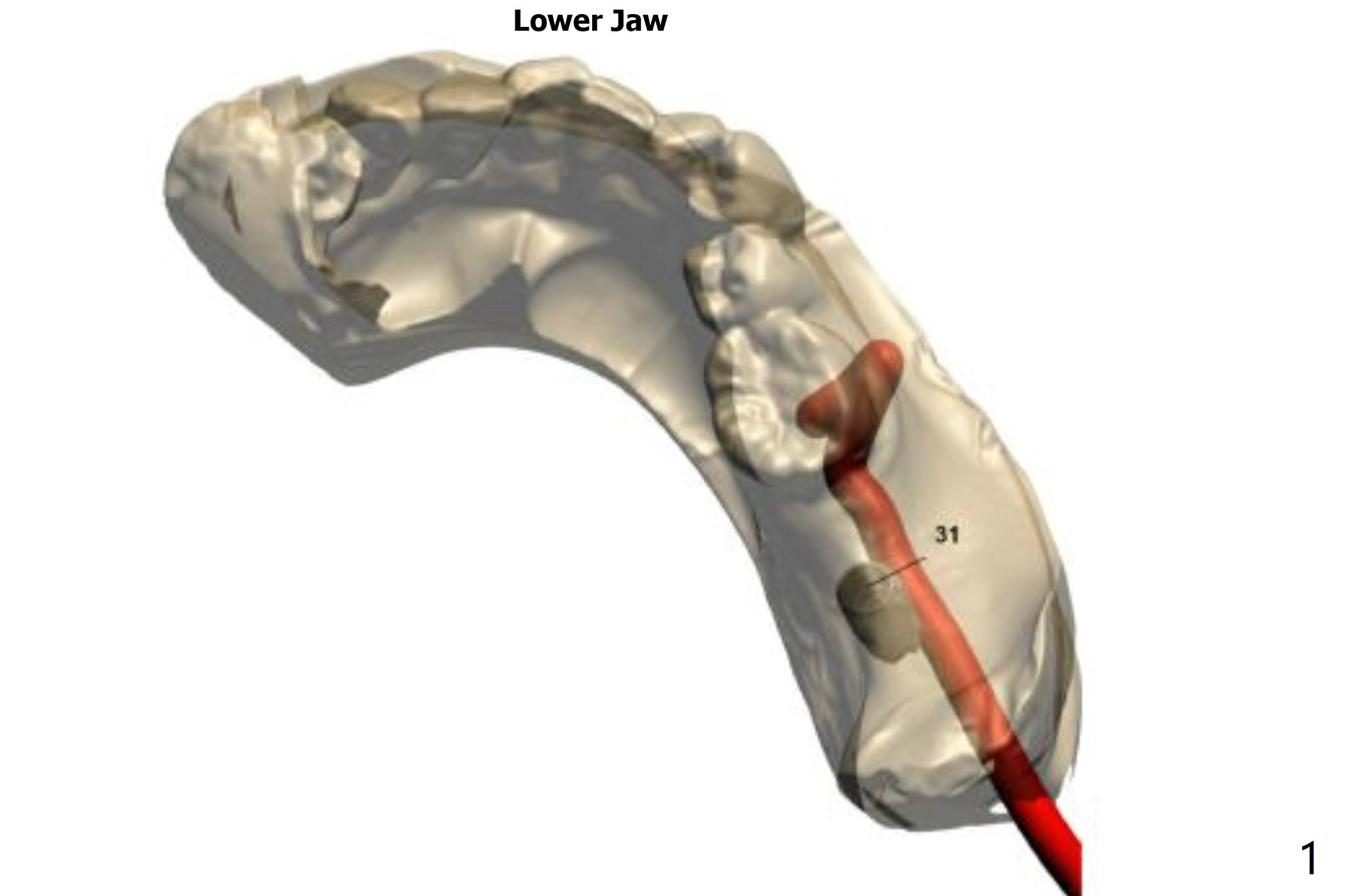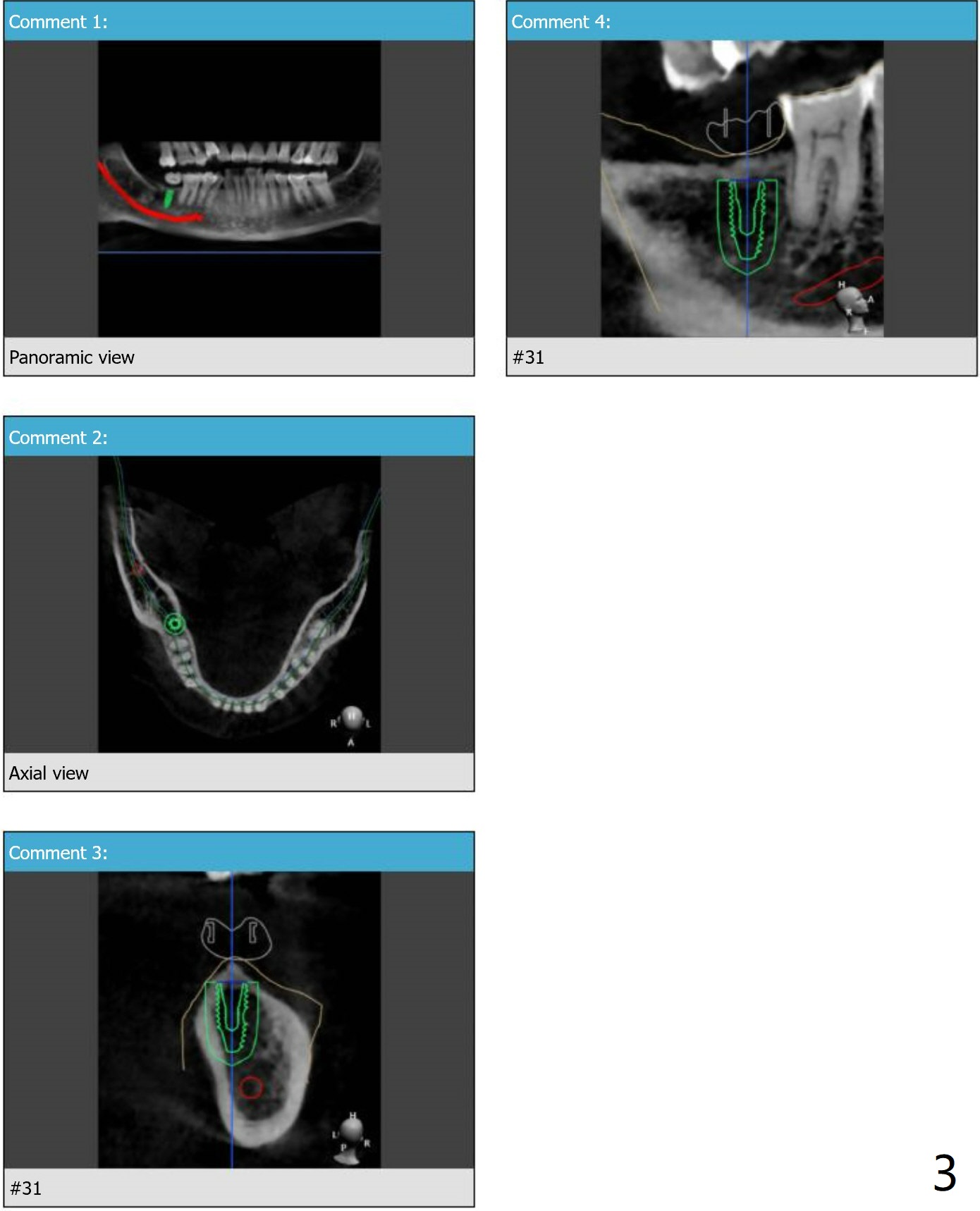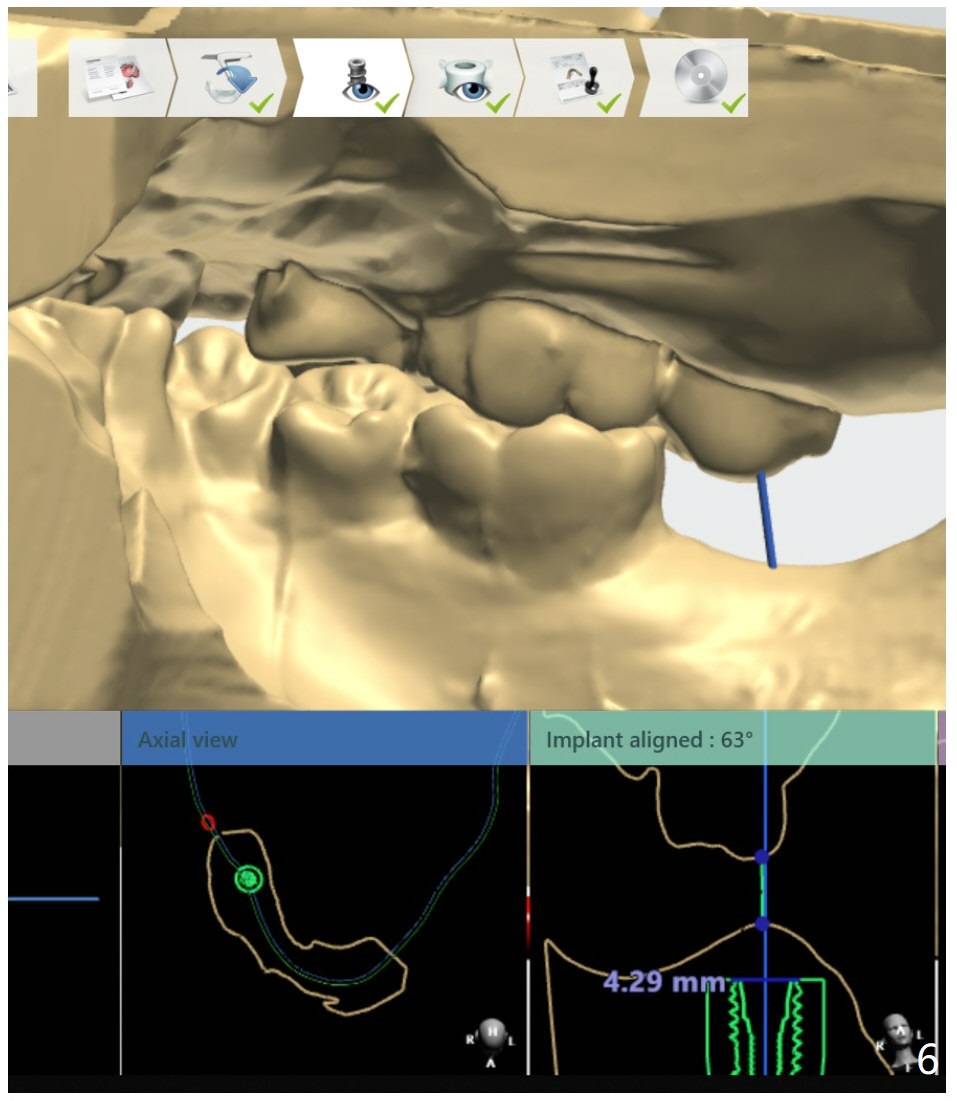 Since the opposing tooth (#2) is supraerupted, after guided surgery at #31 use planning kit to determine how much the vertical space is for restoration and whether orthodontic intrusion is required.