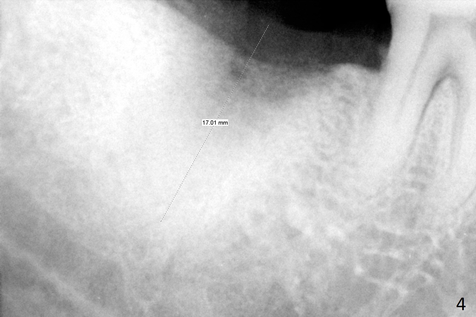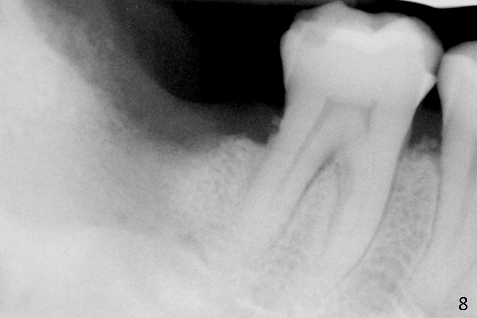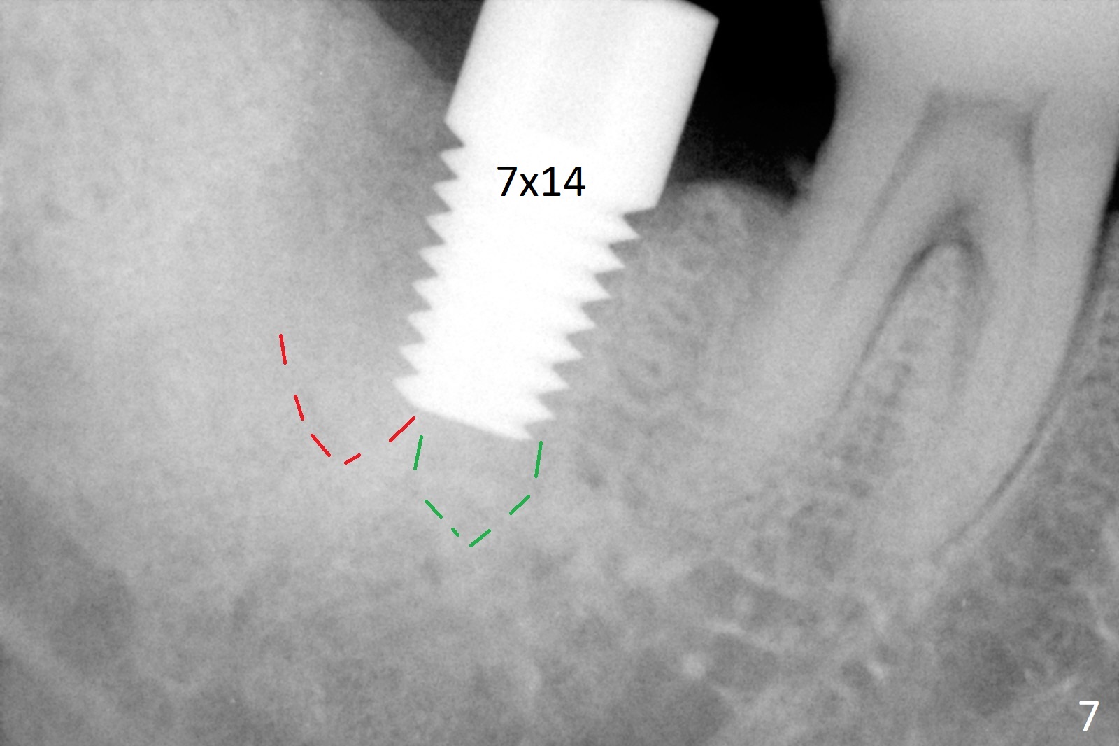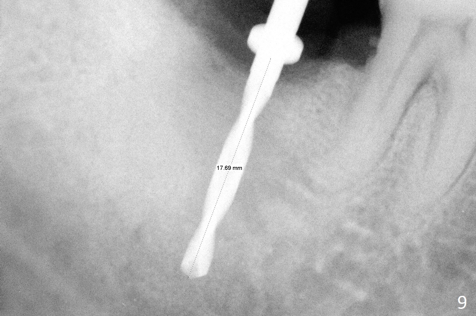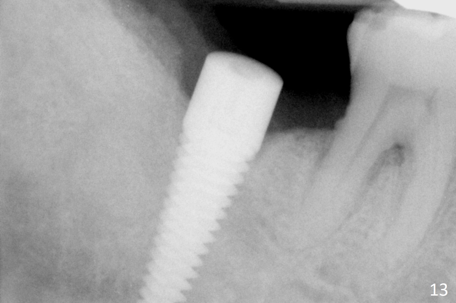 A 50-year-old man, a smoker, presents to clinic with pain of the tooth #15 with apparently occlusal trauma (Fig.1). Two years and three months after #15 extraction, he returns for #31 extraction (Fig.2) and socket preservation (Fig.3). The socket depth is 17 mm along the long axis of the socket 2.5 months post extraction (Fig.4, gingival level). Initial osteotomy is created in the mesial slope of the socket for 14 mm (Fig.5). After sequential osteotomy, a 6x17 mm tap is seated shallower (Fig.6) than the 2 mm drill (Fig.5). Following further osteotomy, a 7x14 mm implant is seated incompletely (Fig.7), which was not found intraop. The implant becomes loose with purulent discharge 19 days postop. The patient returns for 2nd placement 2 months post implant removal (Fig.8). Osteotomy is created probably in the mesial slope with 17 mm (bone level, Fig.9). After insertion of 5 (Fig.10) and 6 (Fig.11) x20 mm taps (tissue level), a 6x20 mm tissue-level implant is placed with clearance from the Inferior Alveolar Canal (Fig.12 yellow dashed line). The implant is restored 8.5 months postop (Fig.13) without bonding 5 mm 0 degree unipost. The crown dislodges 4 months post permanent cementation. Still the patient complains of small crown without occlusal contact. Impression is taken for a new normal-sized crown. The new crown becomes loose 1 year 9 months post cementation (Fig.14). The teeth #14 and 15 remain unrestored.