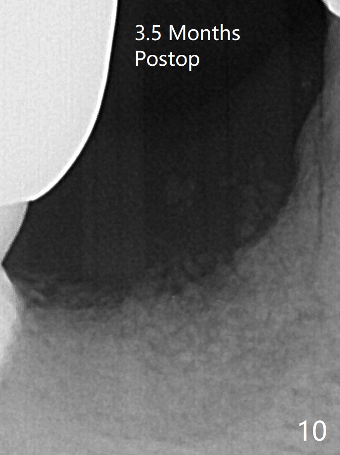 术后3.5个月骨粉高度明显下降(图十)。
