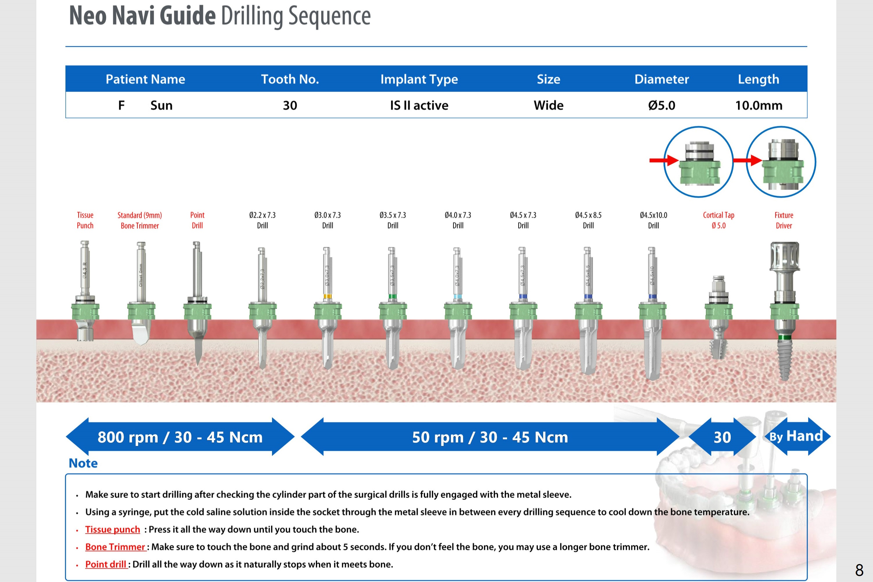 The premolar osteotomy depth first, followed by PA. Use fixture mount for anchor at #29.