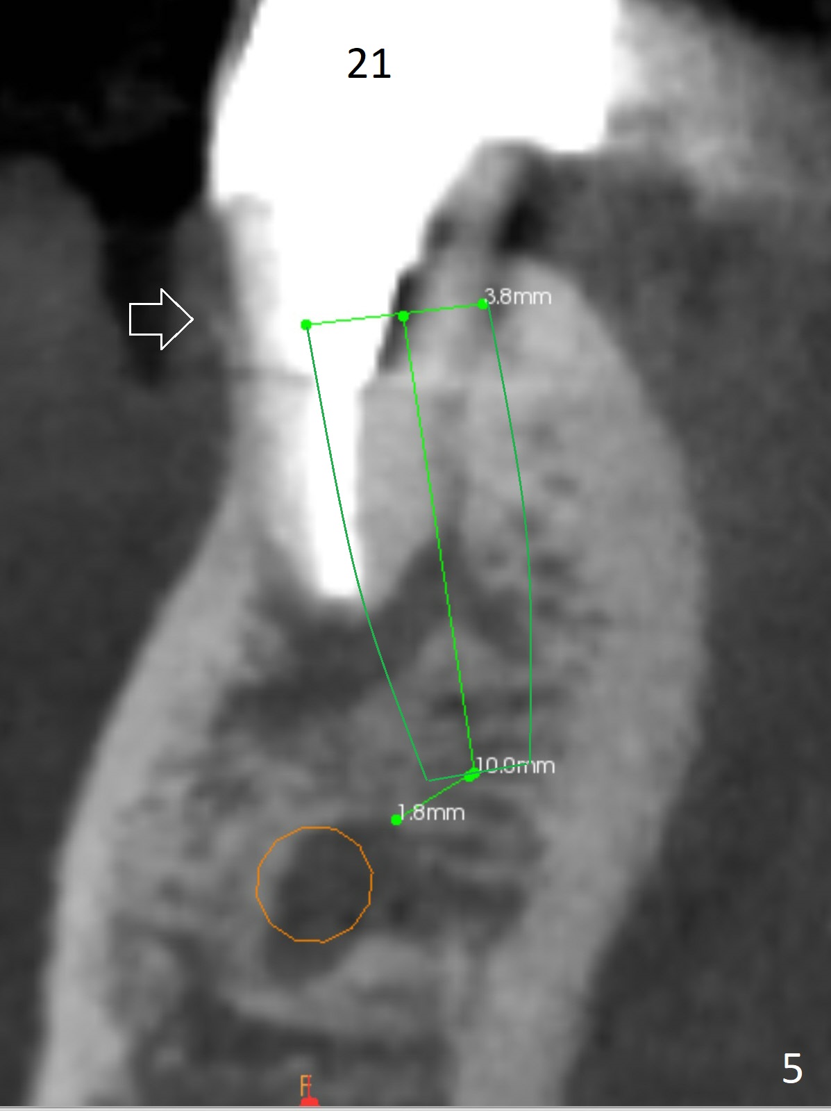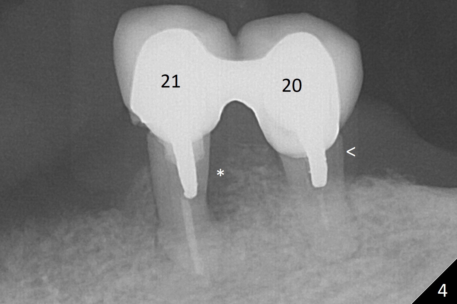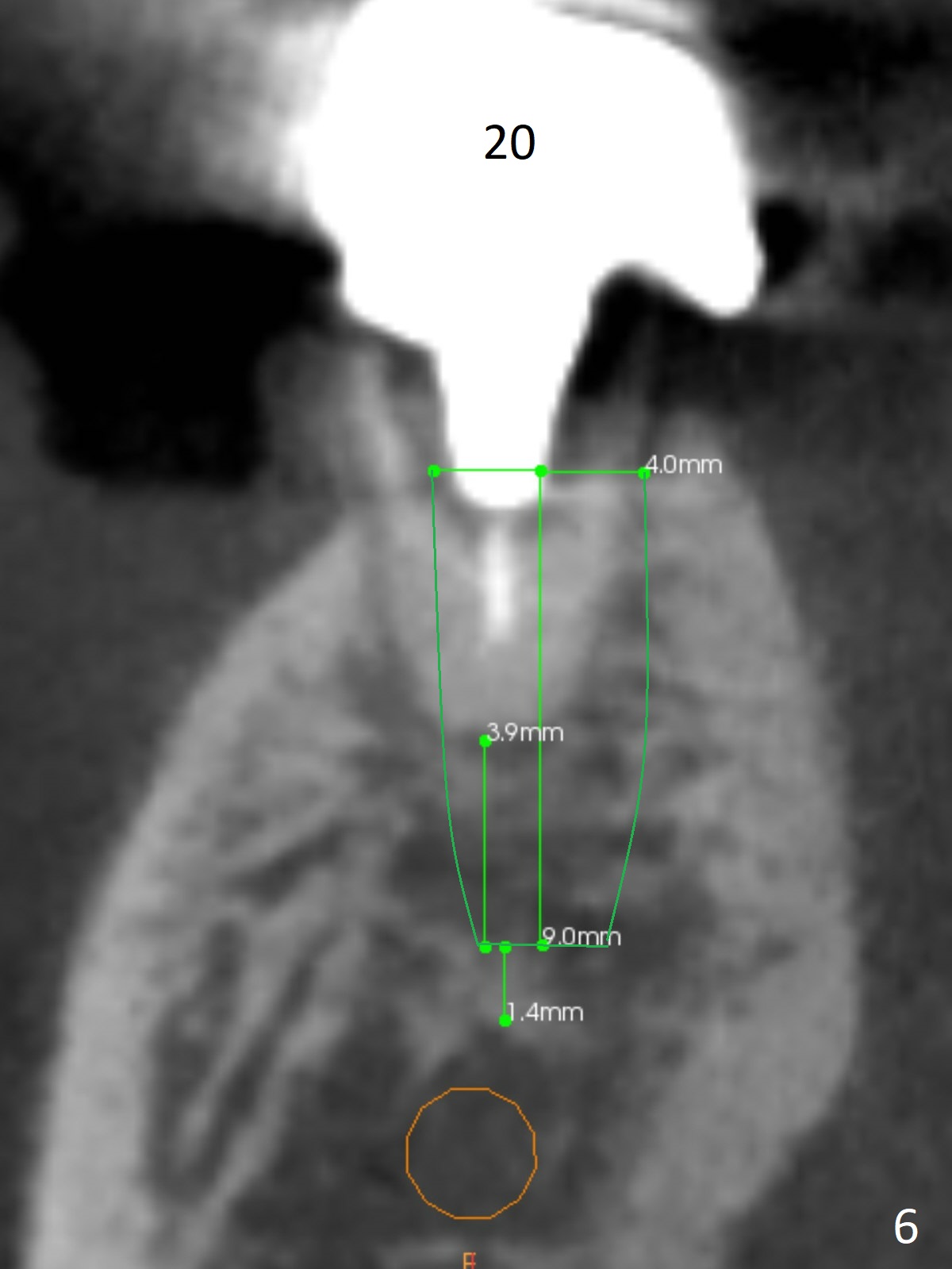 At #20 and 21 (Fig.5,6), immediate implants (2 piece) will be placed, although there is possibility of place a 1-piece one at #21 (Fig.5).