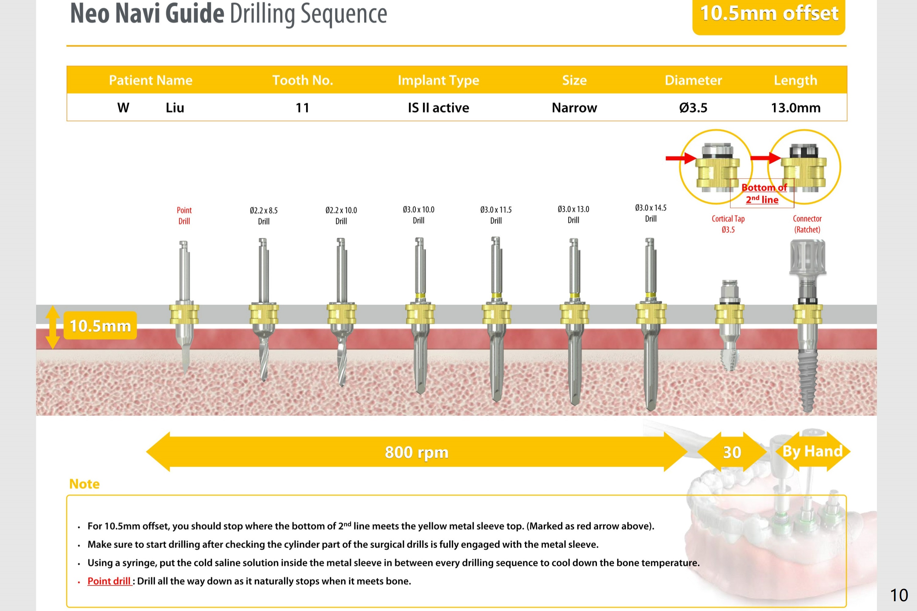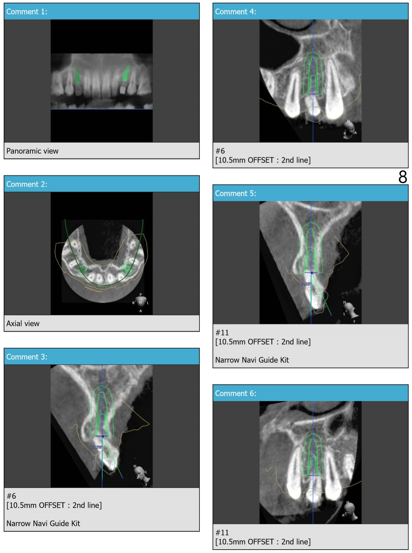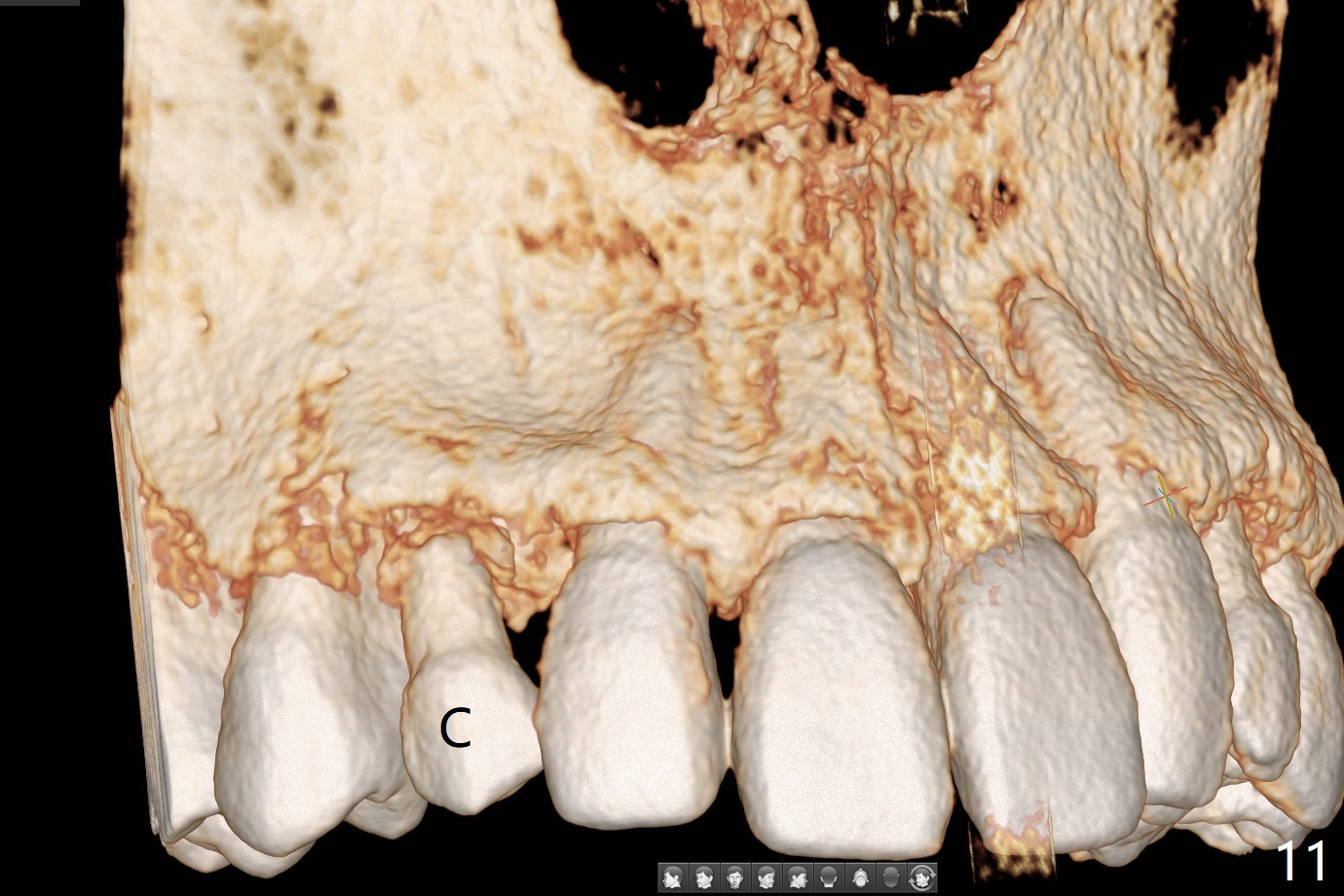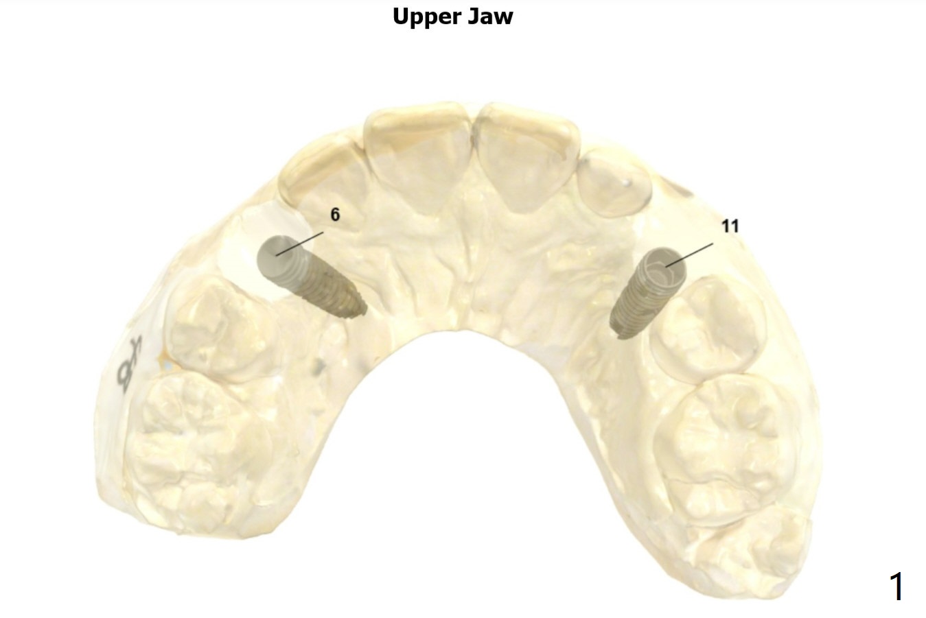 Due to finance, the implant at H or 11 will be placed first. Although the tooth H is loose, try Socket Shield if appropriate. In fact it is not practical, since the alveolus is narrow. Maybe 1-piece implants are the best option.