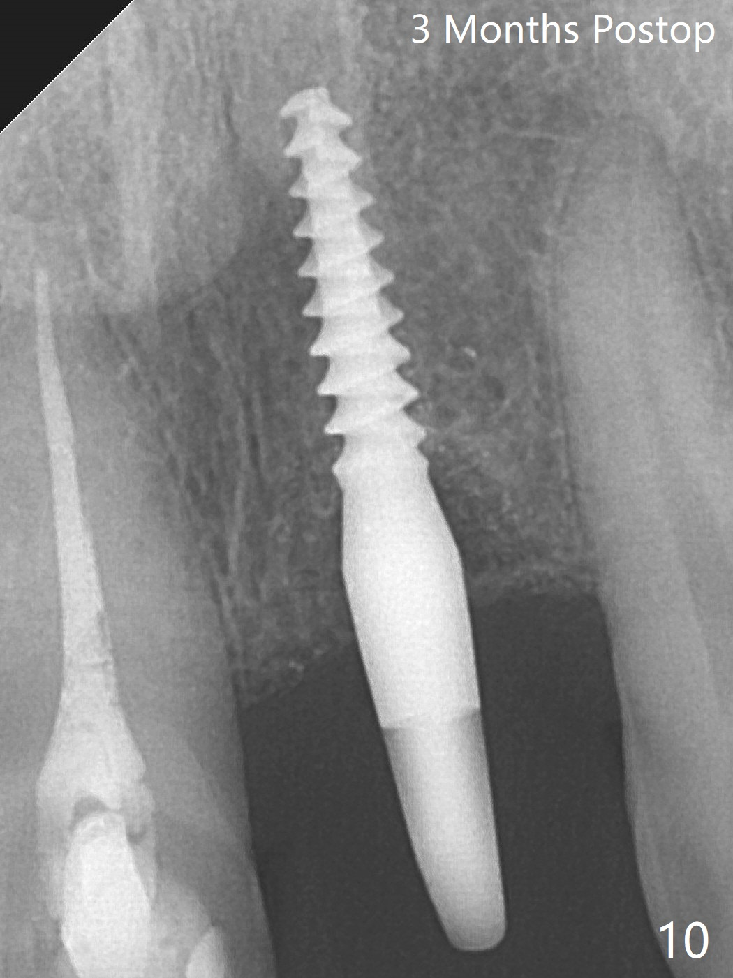 Three months postop there is no gross bone loss around the implant (Fig.10).