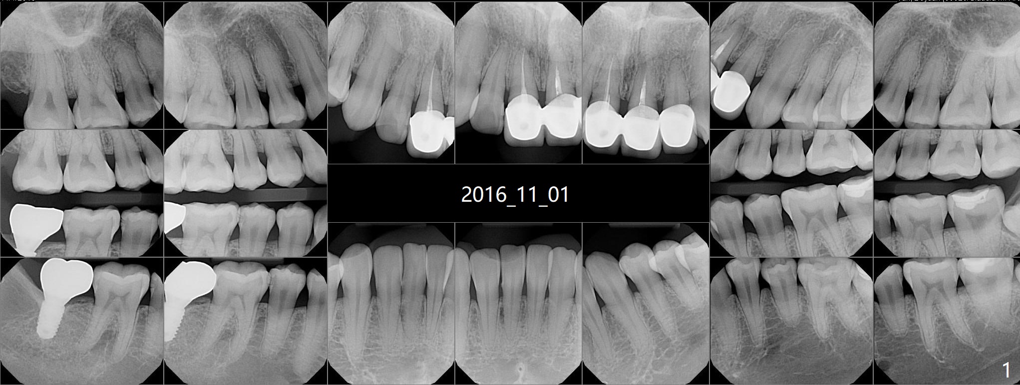 Loose FPD A 29-year-old woman has multiple restoration (Fig.1). Recently the upper anterior bridge is loose. It appears that there is breakage between #9 and 10 and that the tooth #9 is non-salvageable (Fig.2). The FPD will be sectioned between #8 and 9. It is possible that the tooth #8 is non-salvageable. Since the bone height is not ample, an implant system with high stability will be chosen for this case. Osteotomy will be established slightly distal to avoid the Incisive Canal. Photos will be taken preop. Do not forget the Planning Kit; angled abutment may be used. Return to
